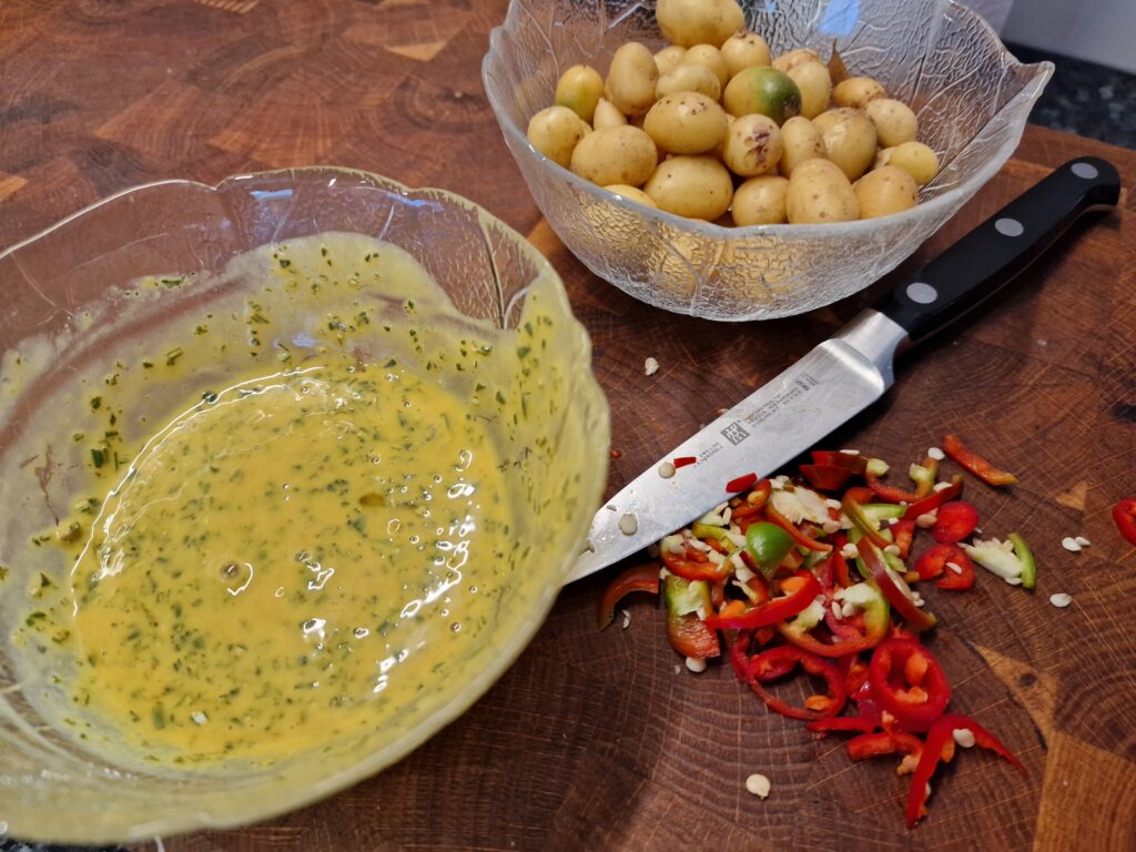 - 4 mittelgroße Kartoffeln, in Scheiben mit Schale