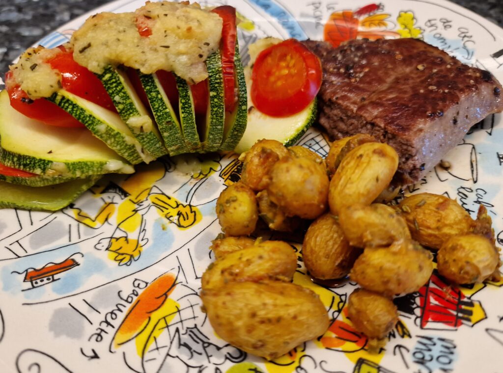 Tipp: Für Flexitarier passt diese Zucchini – Zubereitung gut zu einem Steak.