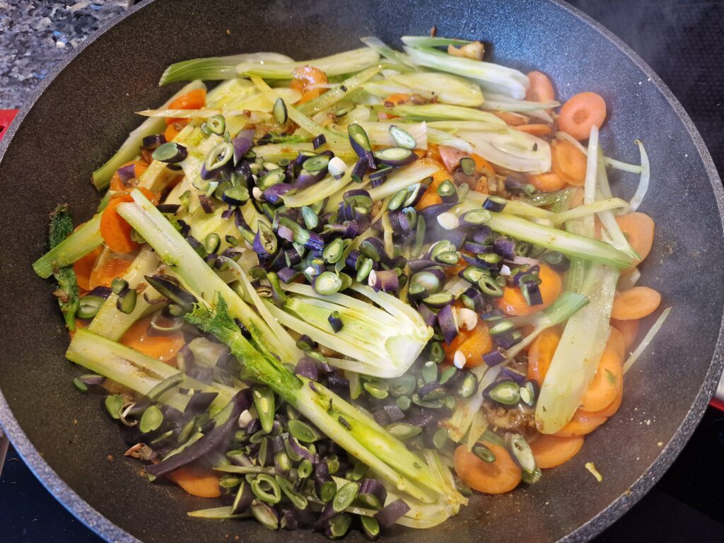 - 150 – 200 g grüne Bohnen, schräg geschnitten