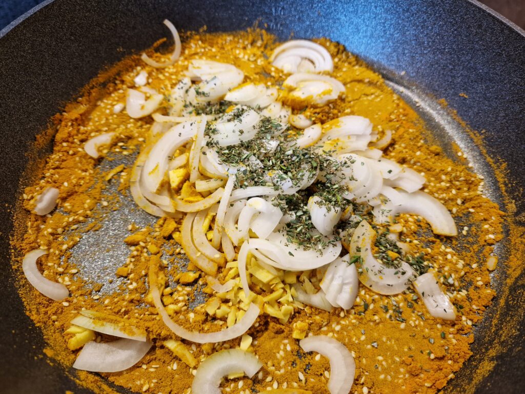 - 2 Zwiebeln, fein in Ringe geschnitten