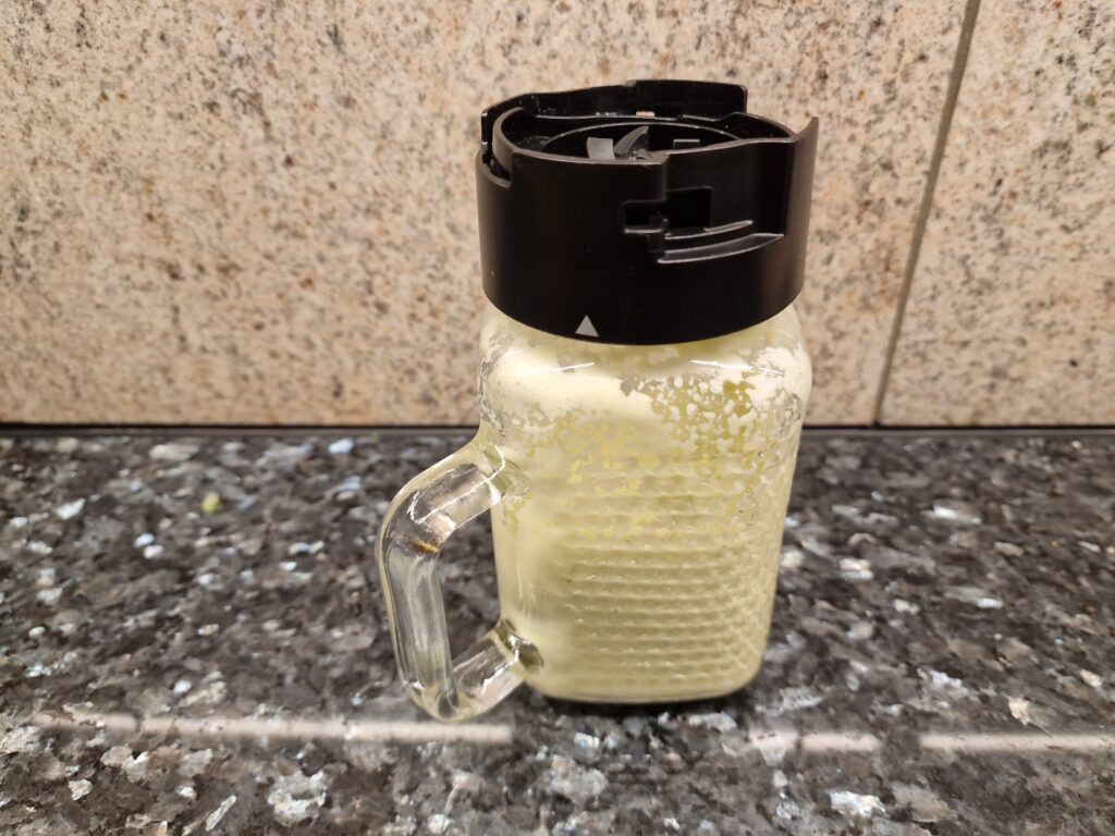 - 200 ml Milch, püriert mit einer Handvoll Kokosflocken
