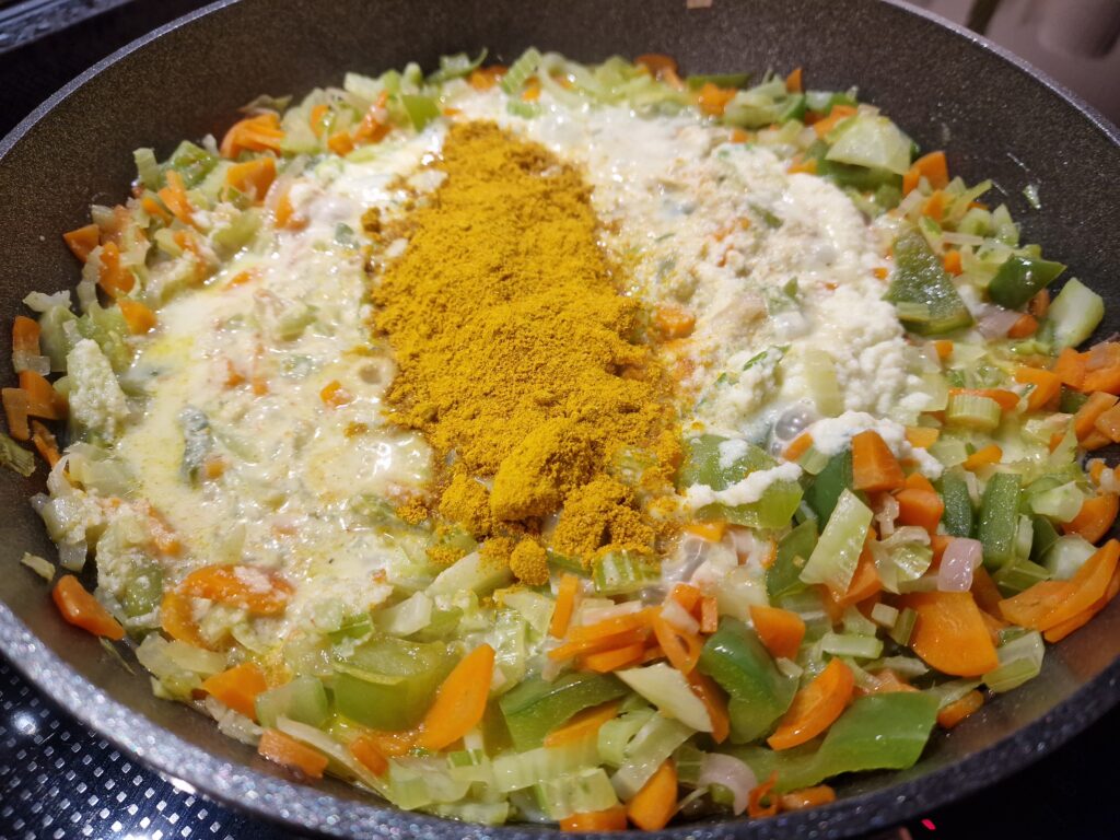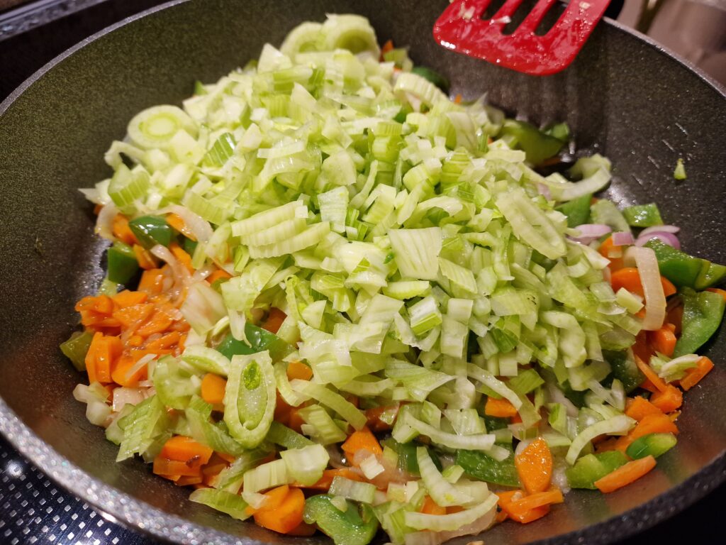Schalotten, Knoblauch, Ingwer und Chili mit Kokosflocken und der Milch pürieren. Paprika ohne Fett anrösten, dann dazu die Schalotten geben und in Olivenöl andünsten, bis sie glasig sind. Fenchel, Möhren und Curry zugeben, leicht anbraten. Das Ganze mit der Brühe ablöschen und die Kokosflockenmischung in Milch zugeben, bei mittlerer Hitze etwa 30 Minuten köcheln lassen. Nun rote Linsen zugeben, ganz zum Schlss.