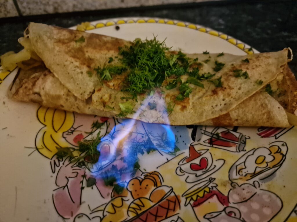 Buchweizenmehl ist glutenfrei und galt zunächst als Arme Leute Essen, bis der besondere Geschmack für Kuchen und Pfannkuchen in Crêpe Manier entdeckt wurde.