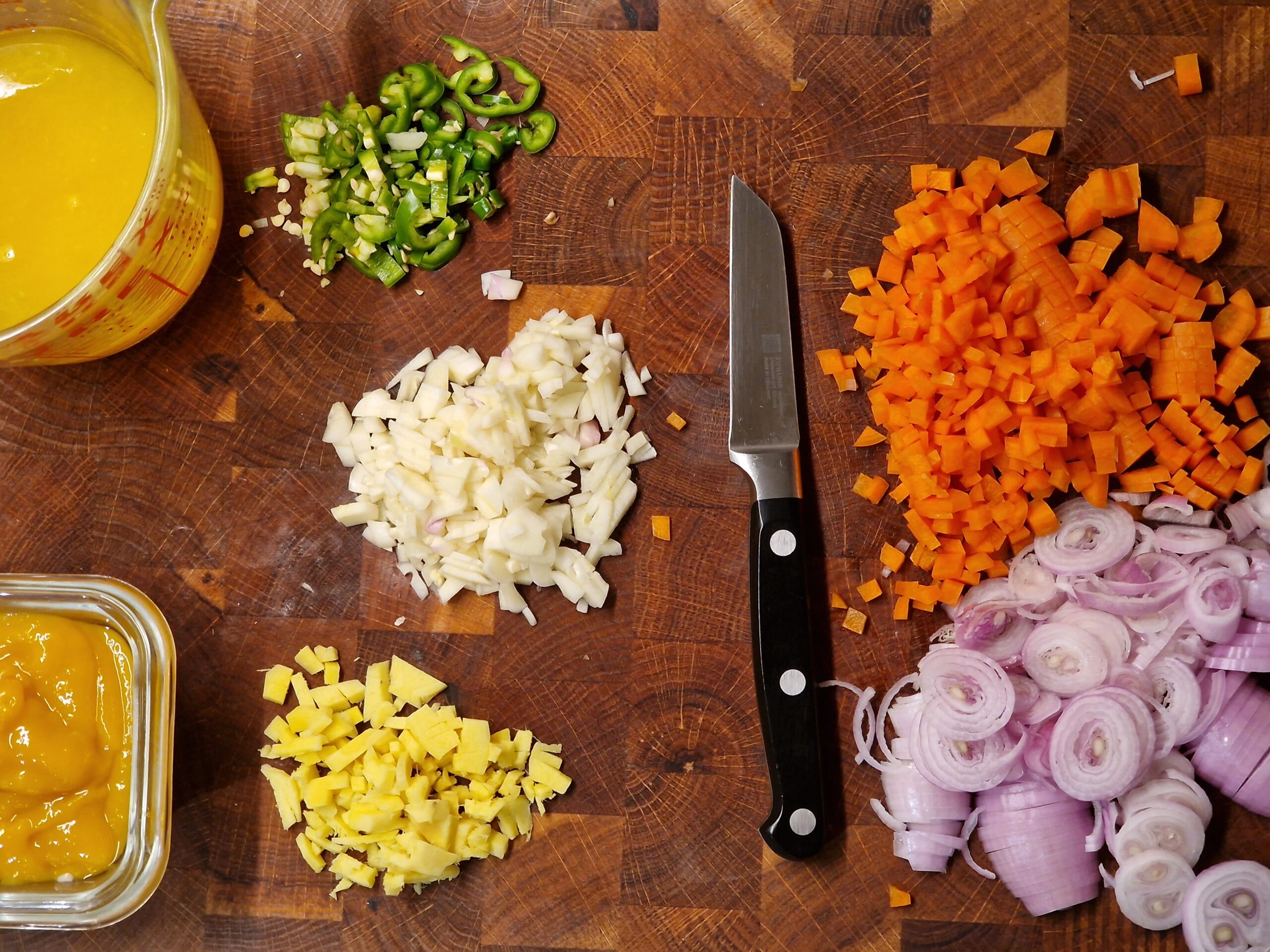 Tipp: Das Gericht schmeckt auch mit Entenbrust und ist dann etwas schneller in der Zubereitung, Weißwein wird nicht benötigt. Hierzu die Haut der Entenbrust rautenförmig einritzen, das Fleisch salzen. Entenbrust in erhitztem Olivenöl auf der Hautseite einige Minuten anbraten, Knoblauch, halbierte Schalotte, Chili und Kräuter zugeben. Entenbrust erst wenden, wenn die Haut schön braun und knusprig ist. Nun bei niedriger Hitzeeinstellung weitere 6 – 8 Minuten braten und immer wieder mit dem austretenden Bratenfett übergießen. Die Entenbrust sollte zum Schluss im Kern saftig und etwas rosa sein. Für die Sauce werden dann noch etwa 100 ml Orangensaft dem Mangopüree zugegeben, da der Orangensaft beim Bratvorgang – anders als beim Garen der Entenkeulen – nicht benötigt wurde.