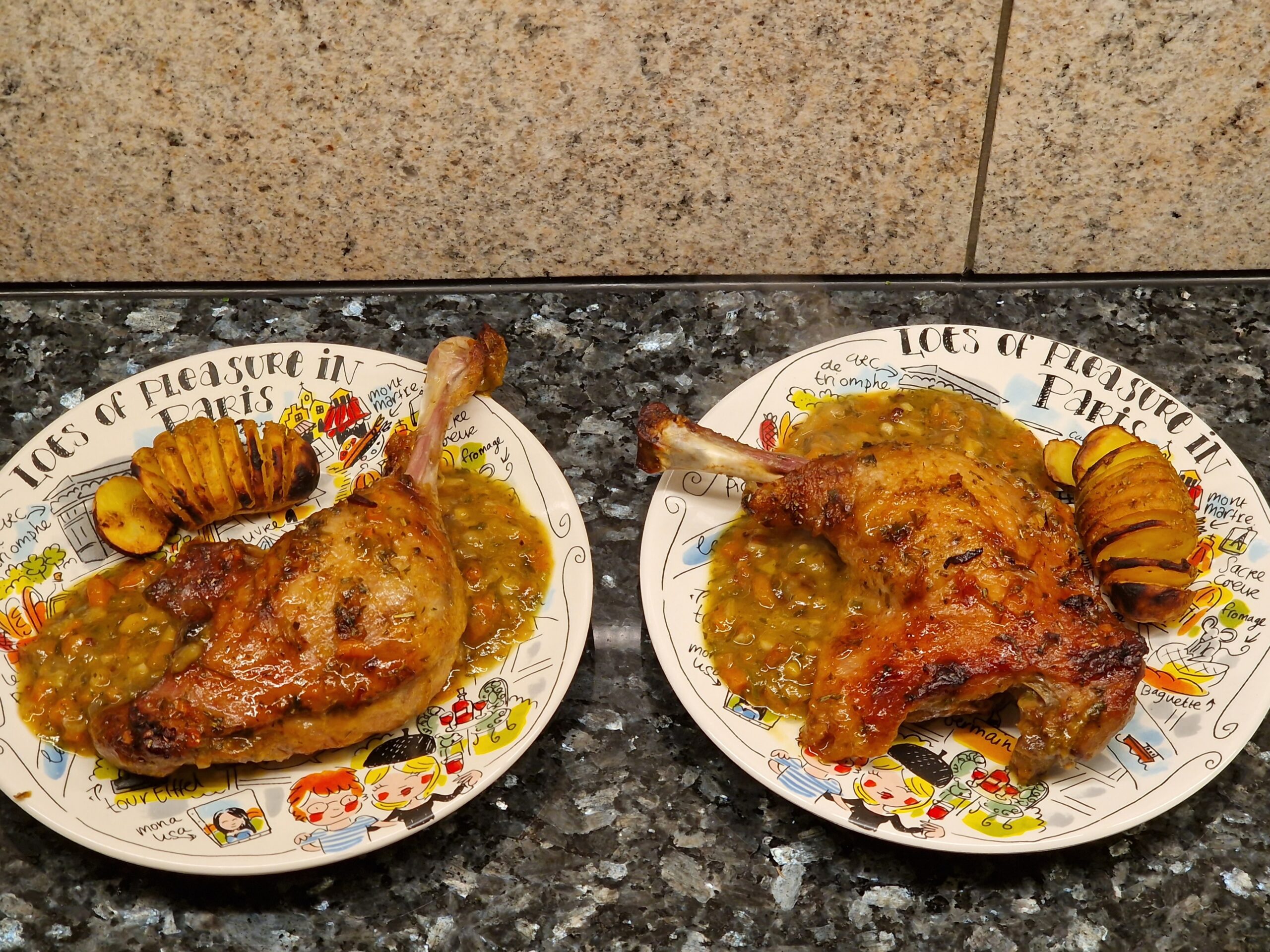 - 2 Entenkeulen (Tiefkühlware 24 Stunden auftauen lassen) [oder 2 Entenbruststücke]