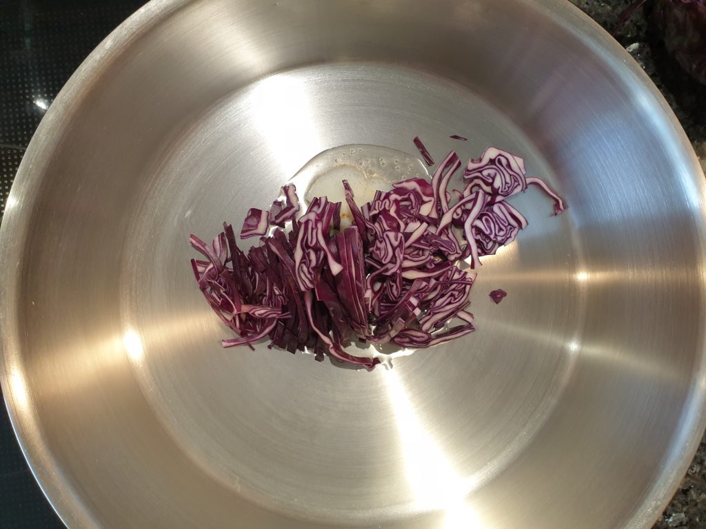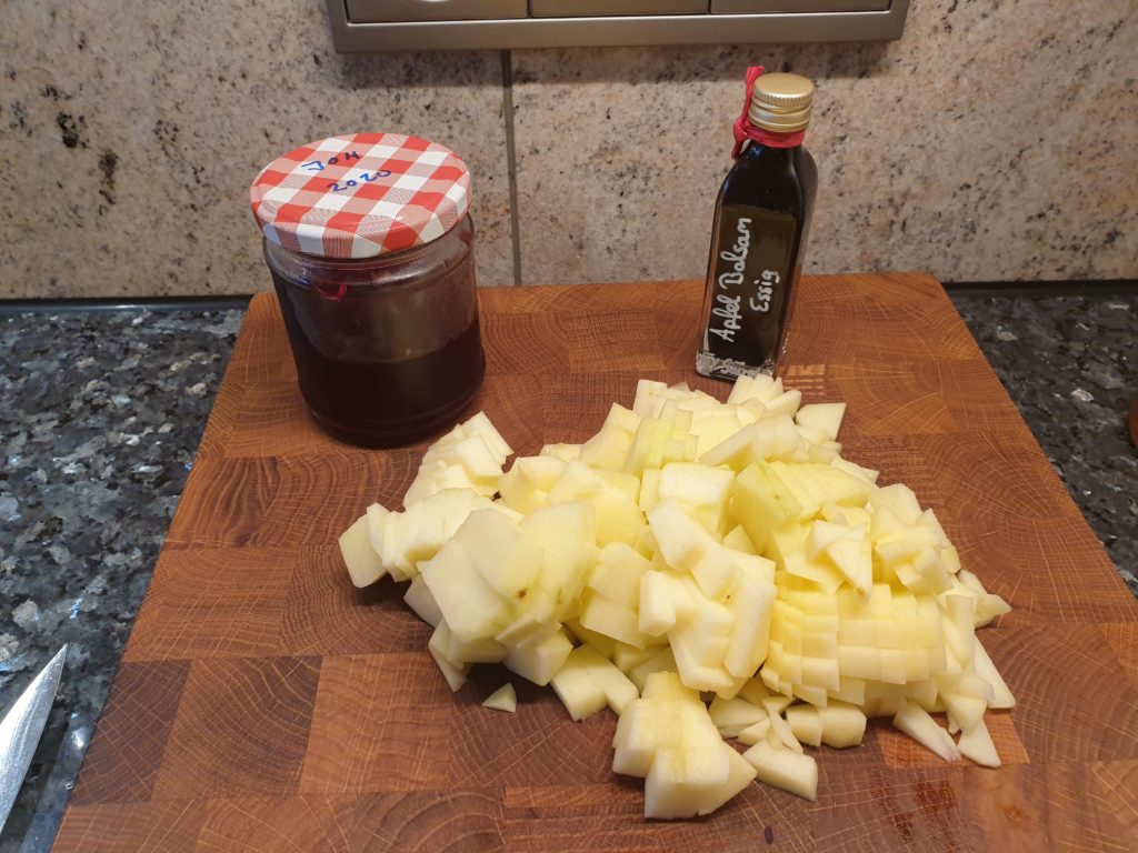 Noch ein regionales Wintergericht, das mit Rotkohl als Püree einmal anders umgeht und auch als kleine Vorspeise serviert werden kann.