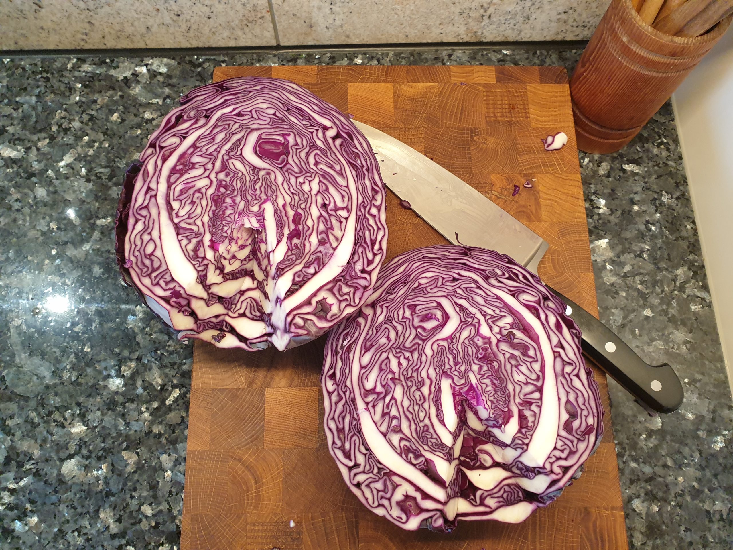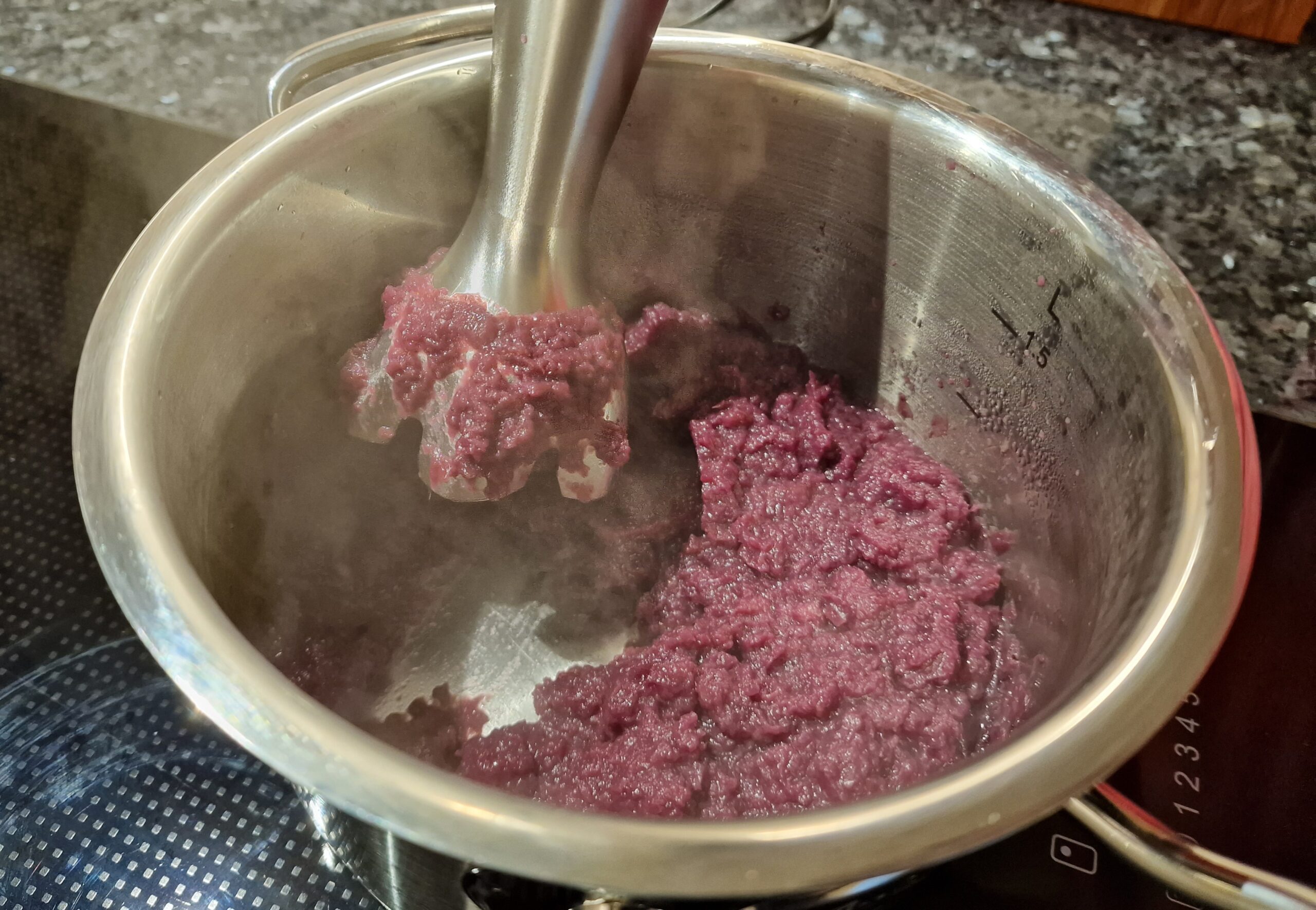 Noch ein regionales Wintergericht, das mit Rotkohl als Püree einmal anders umgeht und auch als kleine Vorspeise serviert werden kann.