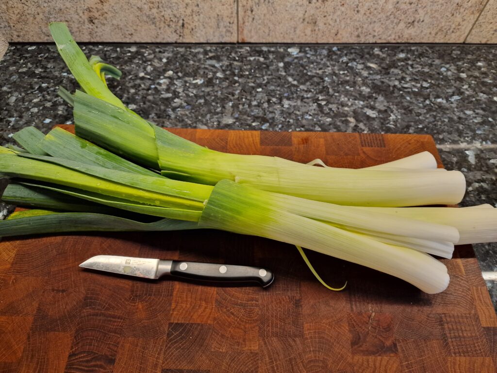 - Porree im Eiswasser anschließend abschrecken, trocknen lassen oder trocken tupfen.