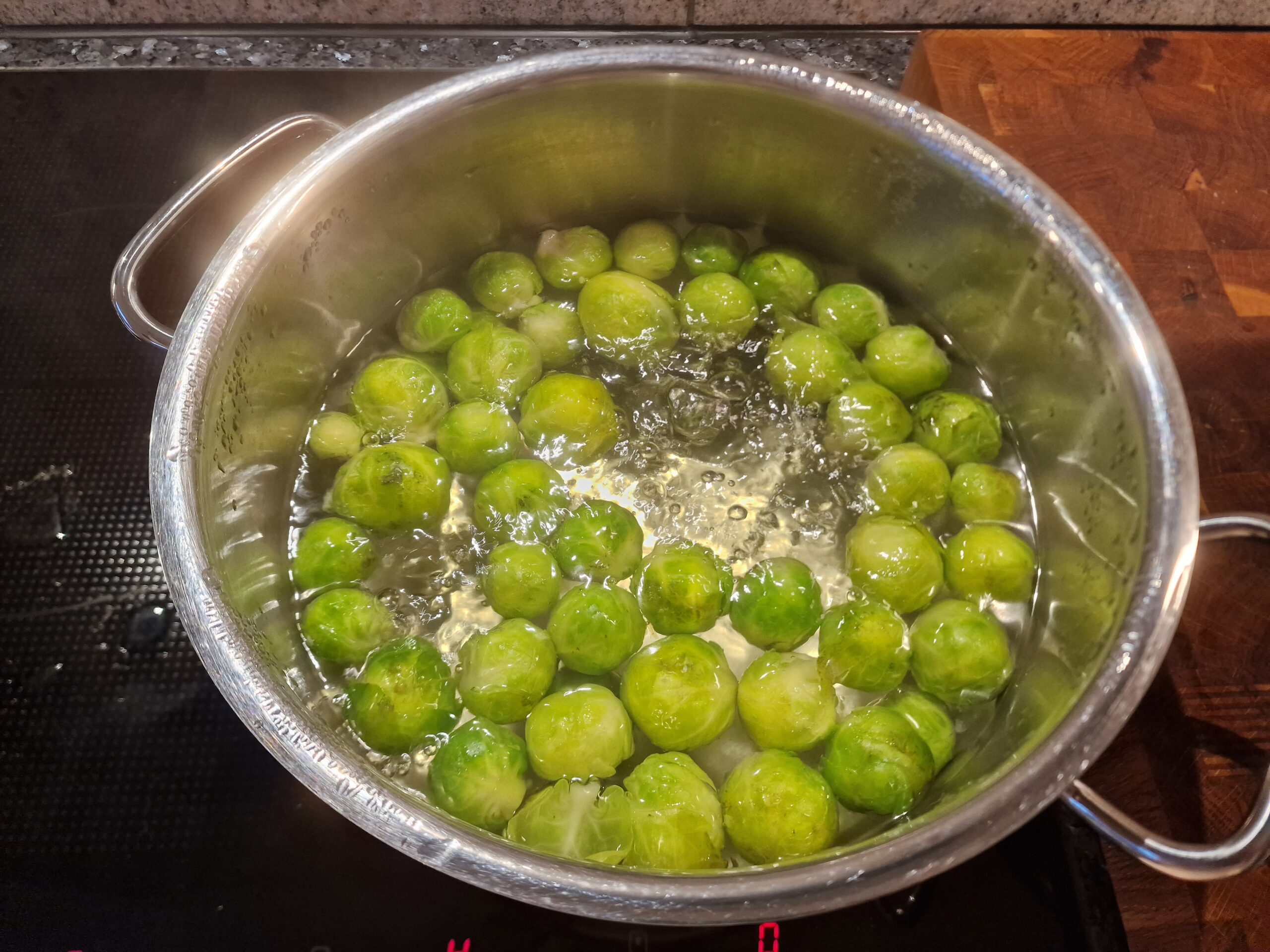 - Rosenkohl für etwa 3 Minuten portionsweise kochen lassen.