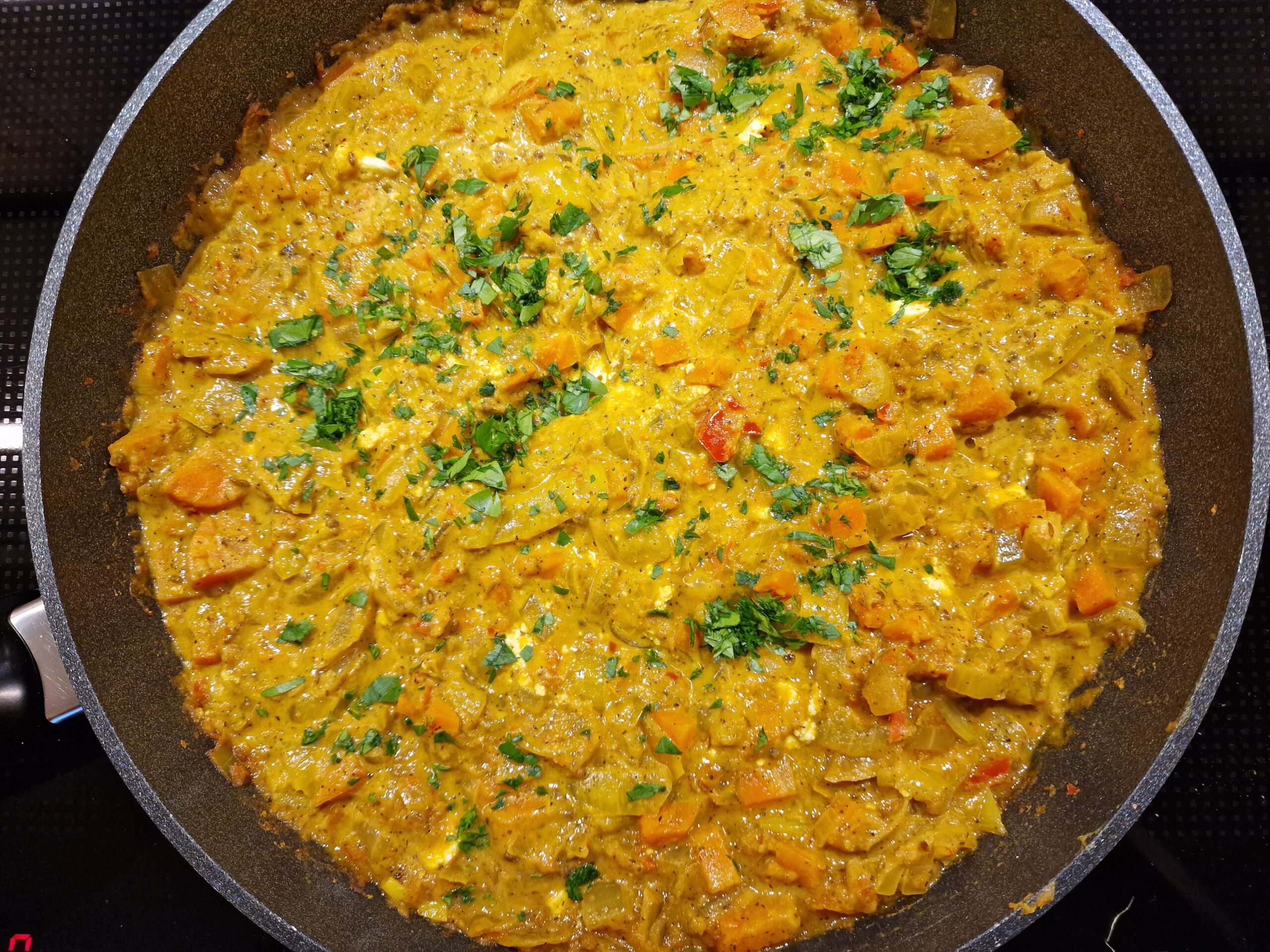 Möhren passen gut zu einer Curryvariante mit viel Sauce.