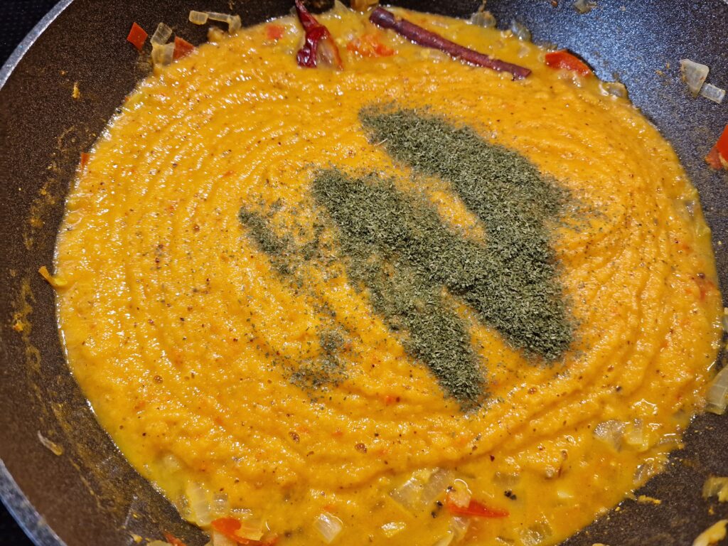 - 8 – 10 Curry-Blätter (können durch Blätter von Zitronenmelisse und/oder Basilikum oder auch getrocknete Minze ersetzt werden)