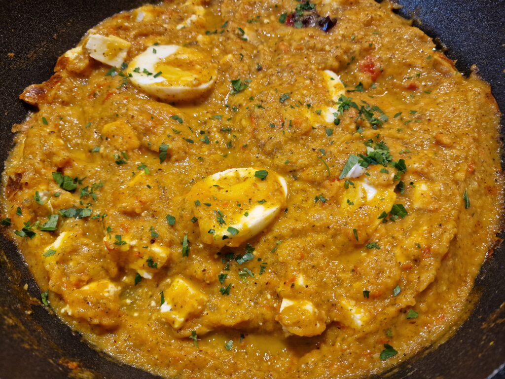 Tipp: Das Curry kann eingefroren werden, allerdings werden dann keine Eier zugefügt. Wird das Curry aufgewärmt, werden hartgekochte Eier frisch zugegeben.