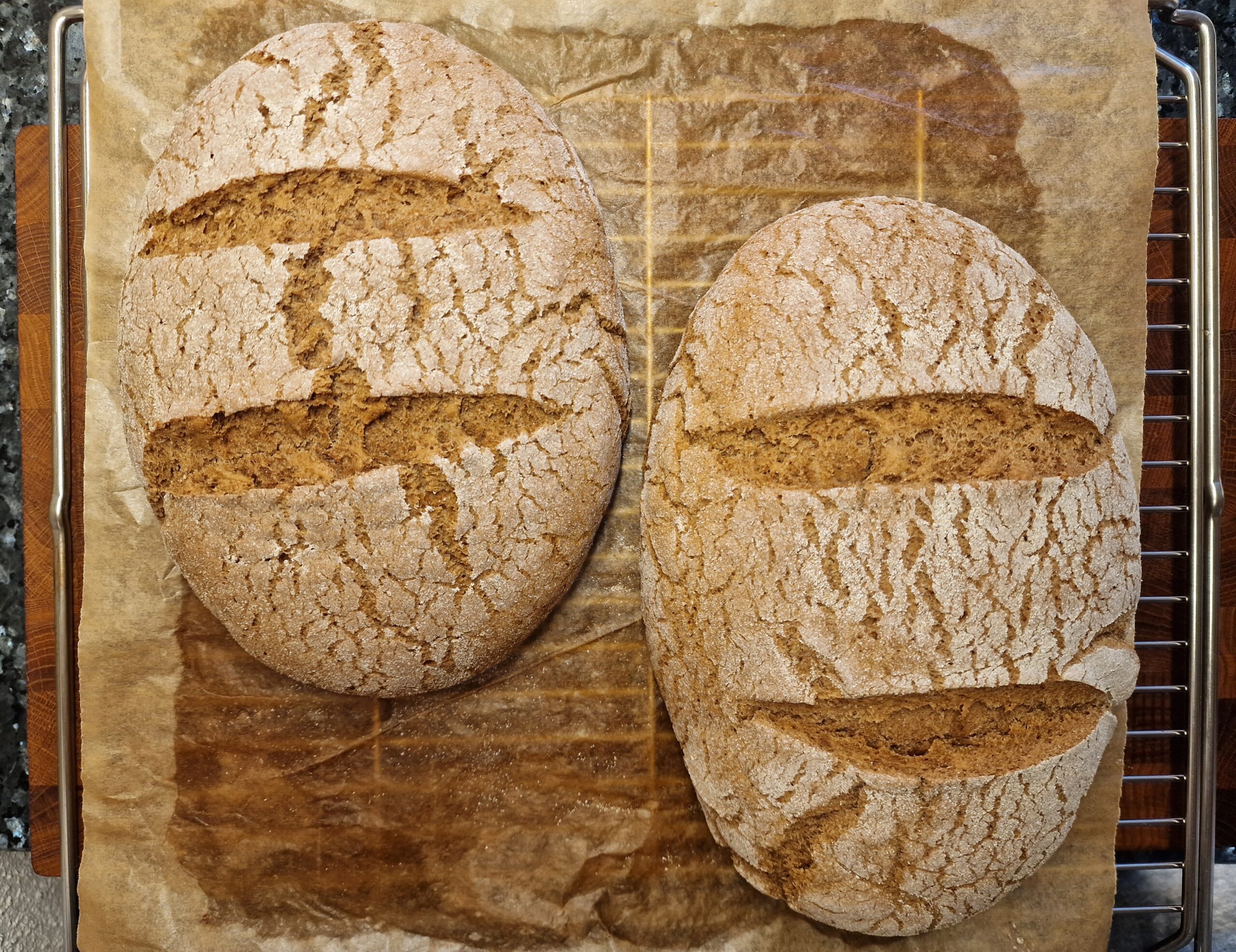 Dies Roggenbrot benötigt Hefe und Sauerteig, das Rezept ergibt zwei Roggenbrote a 800 g.