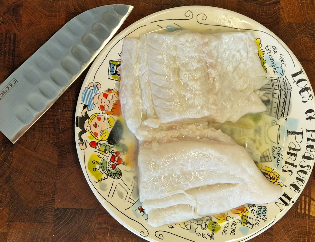 Kabeljau säubern, mit Limettensaft säuern und salzen.