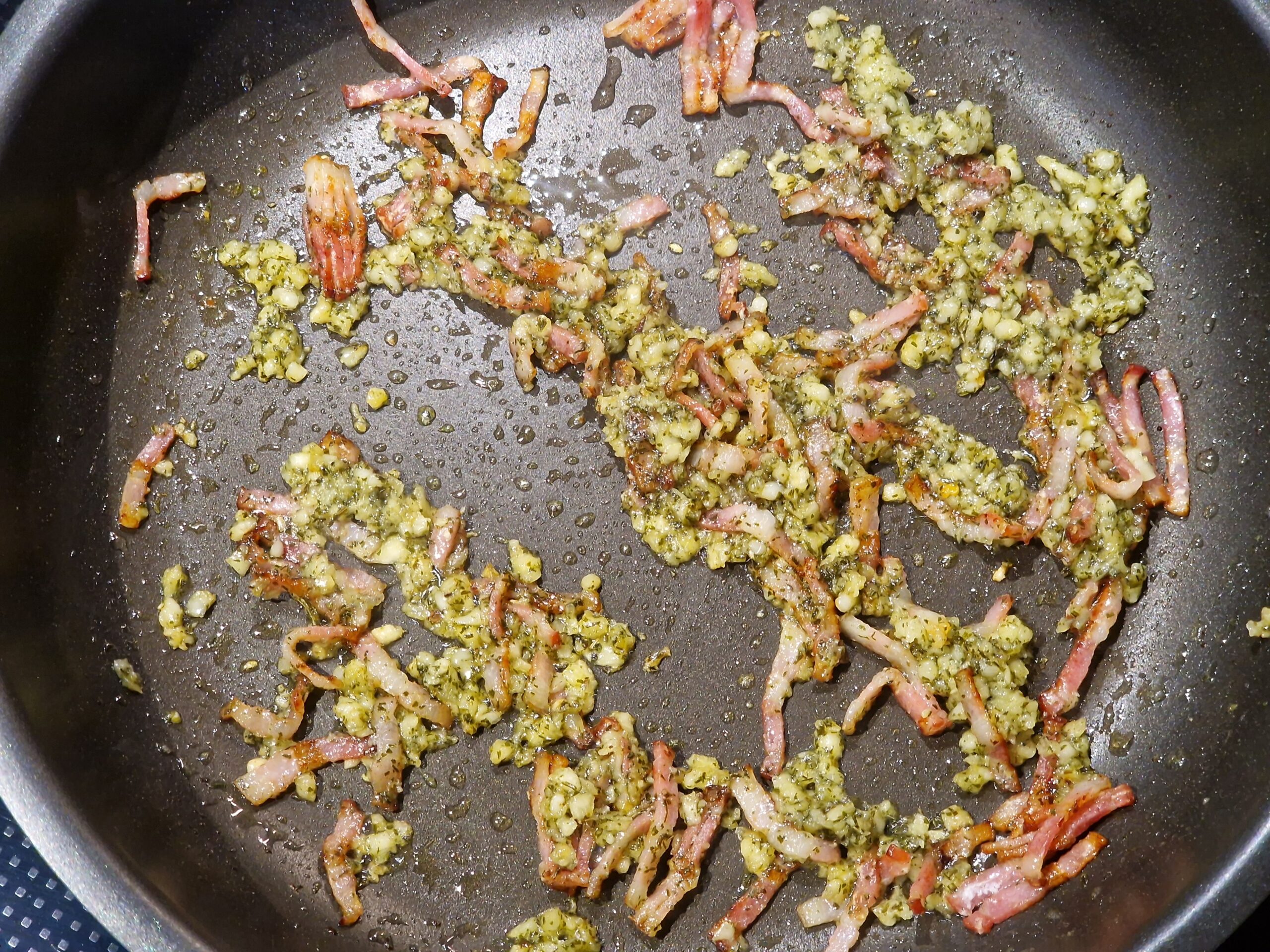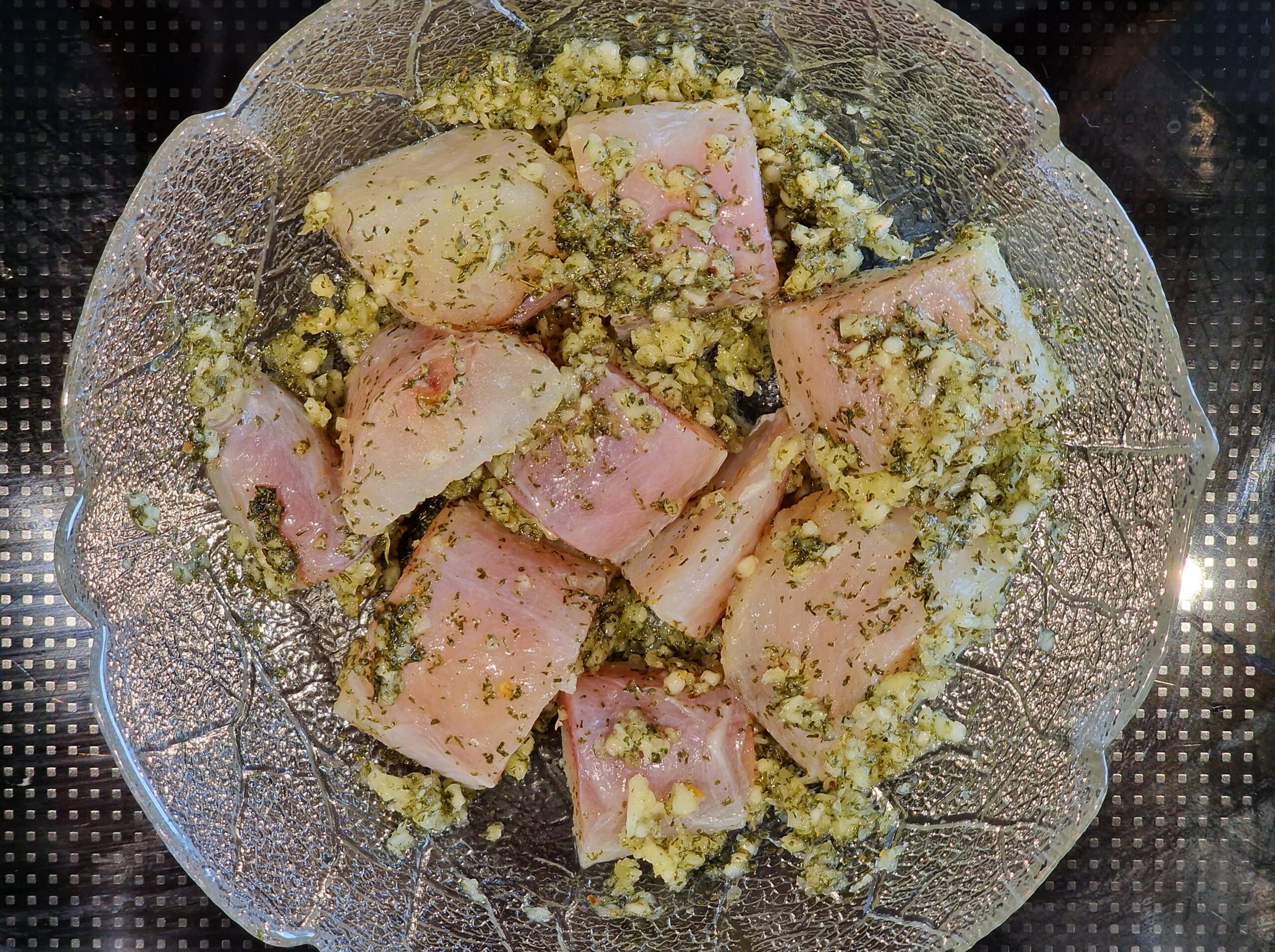 Aus den Zutaten eine Marinade bereiten und die Seeteufelschwänze 4-6 Stunden darin marinieren. In Olivenöl mit fein gewürfelten Baconstückchen kurz anbraten und mit Limettensaft beträufelt servieren. Dazu schmecken die oben angegebenen Beilagen und Bratkartoffeln. Das Avocado Espuma kann gegebenenfalls mit etwas Petersilie und Kaviar bestreut serviert werden.