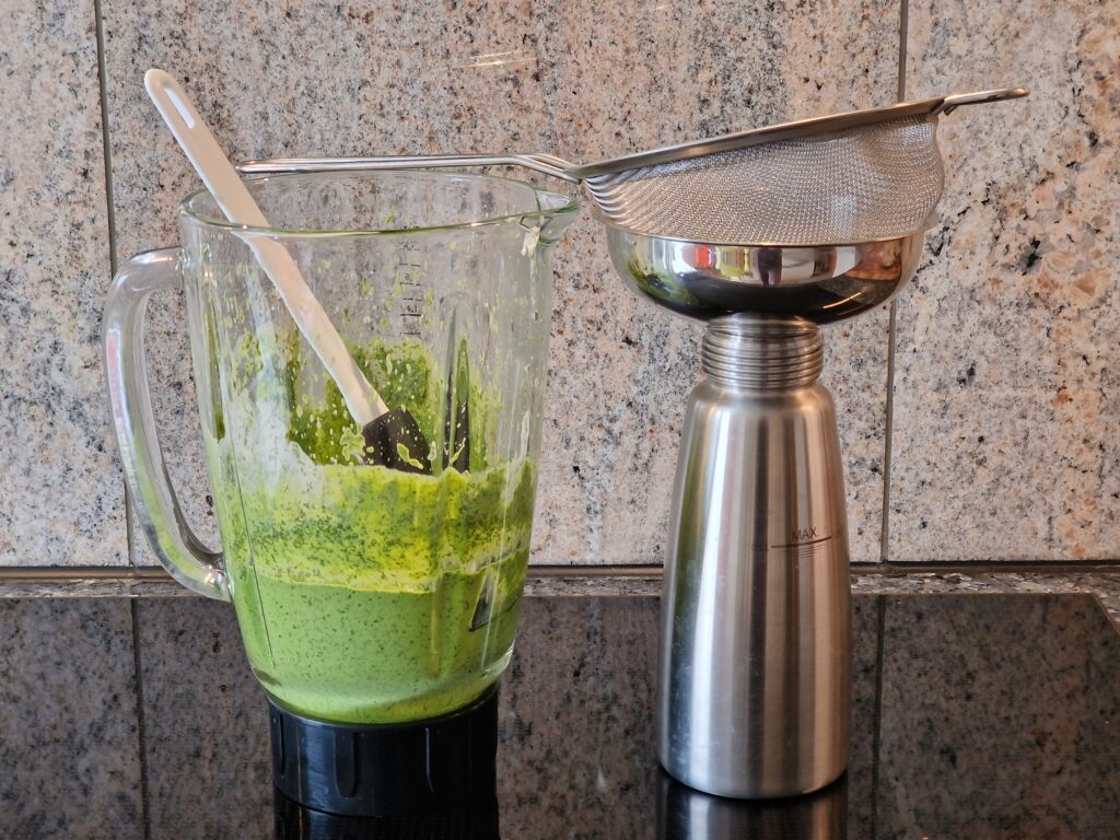 Tipp: Als Vorspeise die Reste der Zubereitung von Avocado Espuma zu gleichen Teilen mit Quark gemischt mit Roggenbrot Scheibchen servieren.