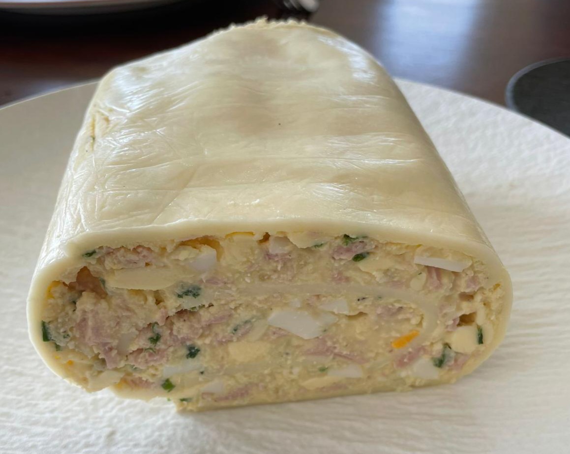 Tipp 2: Statt Schmelzkäse kann zur Kalorienreduktion auch 300 g Frischkäse ohne die Butterzugabe verwendet werden. Vor dem Aufschneiden die Käserolle im Gefrierfach 30-40 Minuten leicht anfrieren um ein Verformen zu vermeiden.