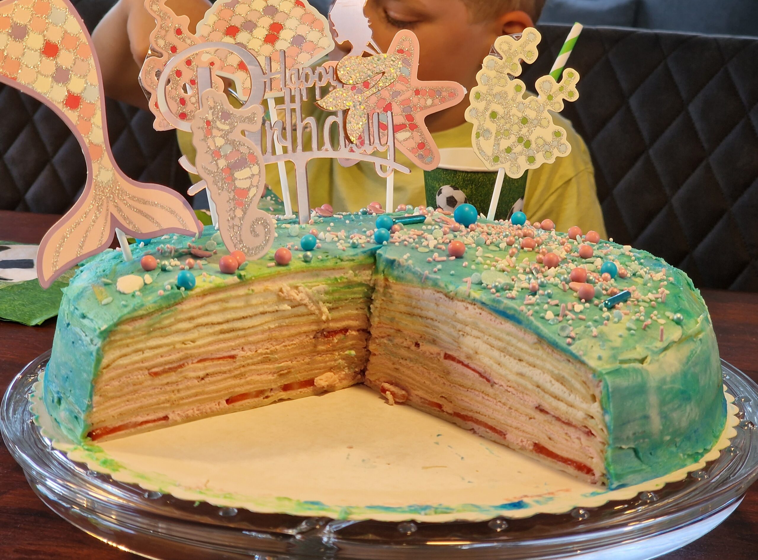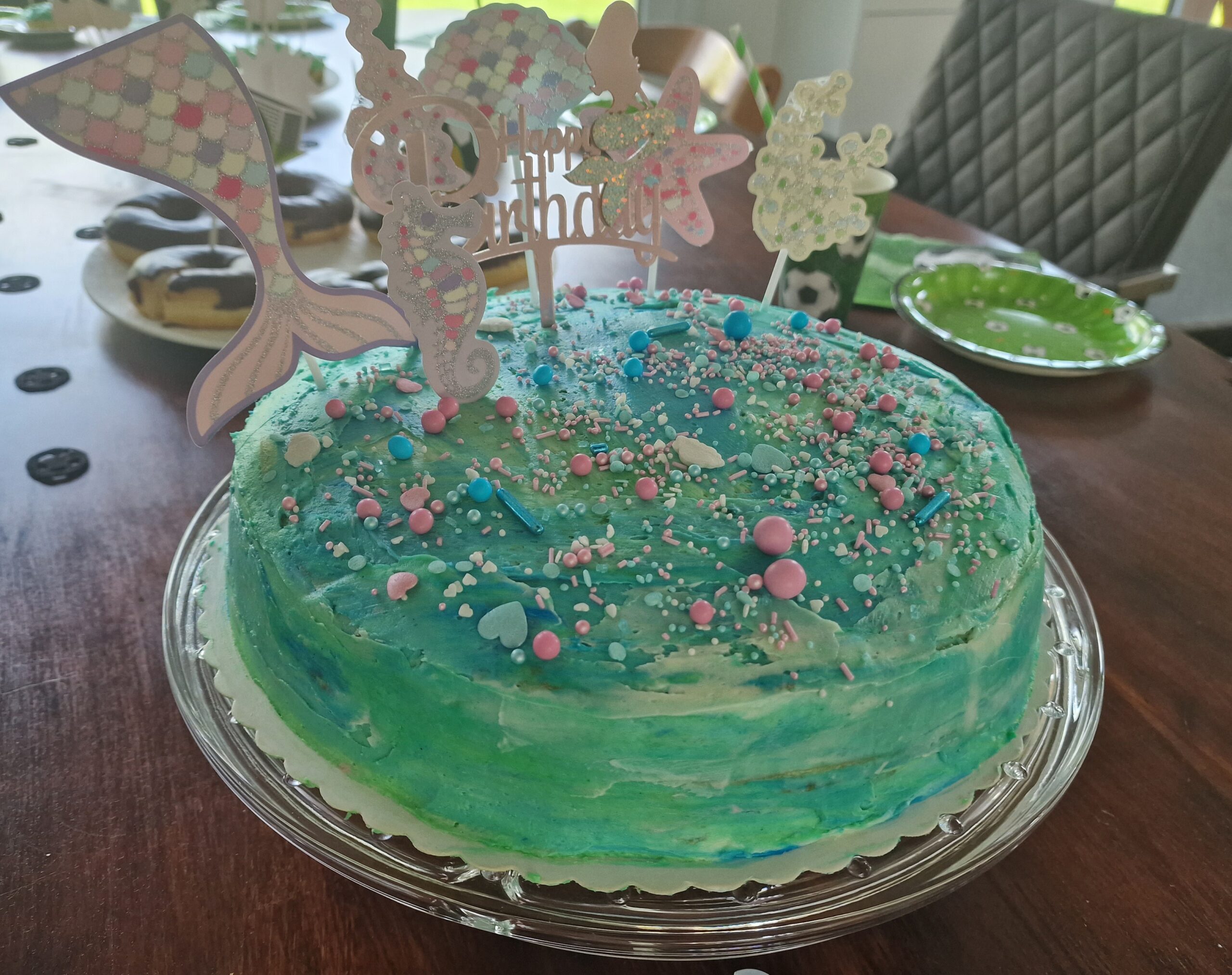 Ein kleiner Hit für (Kinder)- Geburtstage, der nicht allzu süß schmeckt, sehr gern gegessen wird und je nach Thema kreativ verziert werden kann – danke, Marileen. Die Torte kann in allen Formvarianten hergestellt werden, zum Beispiel wird die Torte mit einer Backform von 18 cm Durchmesser klein, aber hoch. Sie lässt sich dennoch gut anschneiden. Das Beispiel hier ist eine flachere Torte mit größerem Durchmesser, was für Kindergeburtstage besser zu handhaben ist.