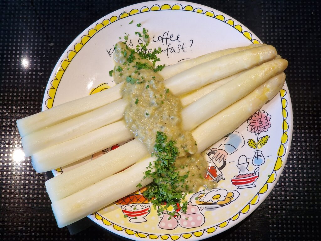 Zur Spargelzeit sind der Experimentierfreude keine Grenzen gesetzt, hier eine Kombination mit Ingwersauce.