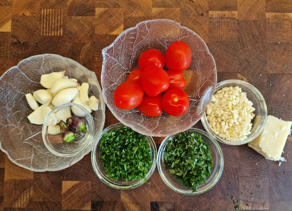 • 30 g Hartkäse (Pecorino, Parmesan), fein gerieben