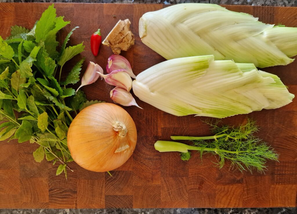 - 1 Knolle Gewürzfenchel, in feinen Stückchen
