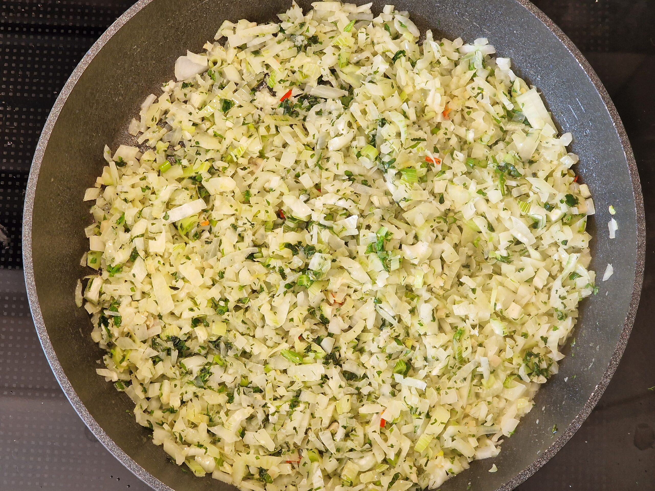 Tipp: Dazu passen – als Option für Flexitarier – als Beilage kross angebratene Sardellen oder Garnelen, letztere werden dem Gemüse nur kurz vor Ende zugegeben, bis sie sich rosa färben.