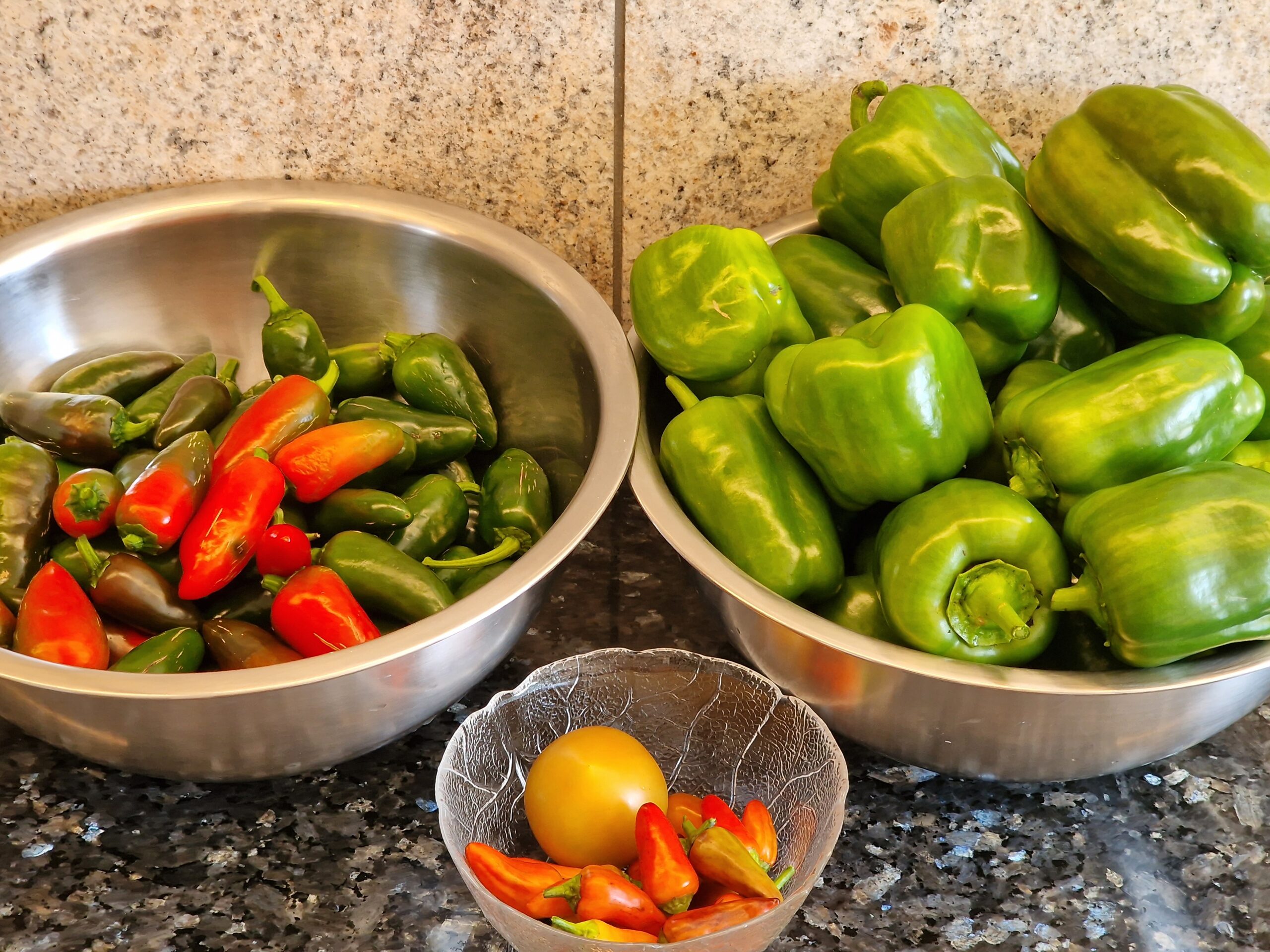 - 4 große oder 8 kleine Paprika, grün, gelb oder rot