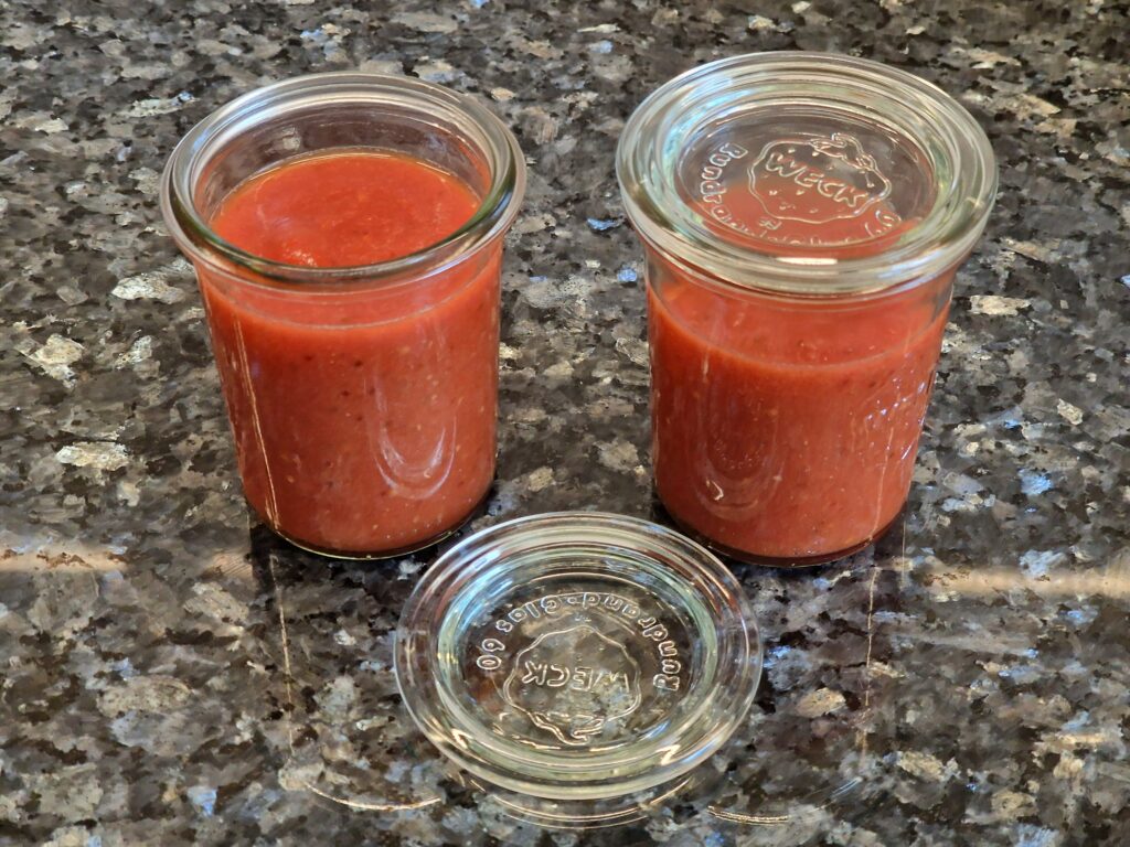 Alle Zutaten vermischen, pürieren und 5-15 Minuten offen einköcheln lassen.