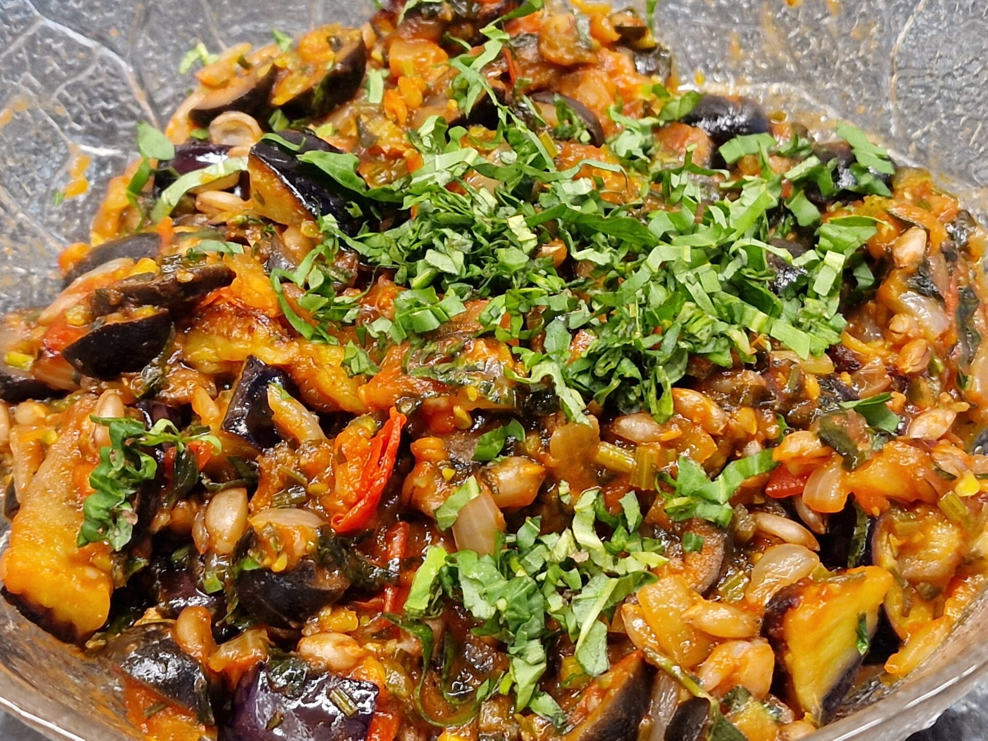 Die Caponata in Portionsschalen geben und im Kühlschrank kalt werden lassen. Guten Appetit.