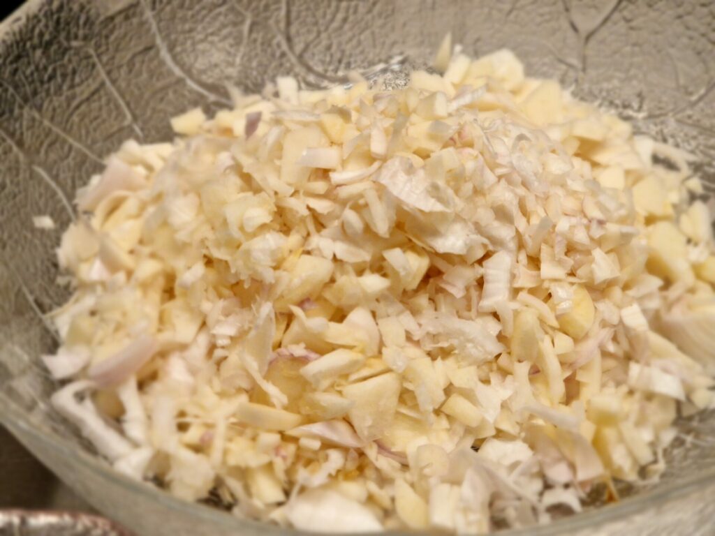 - 4 Zwiebeln, gehackt