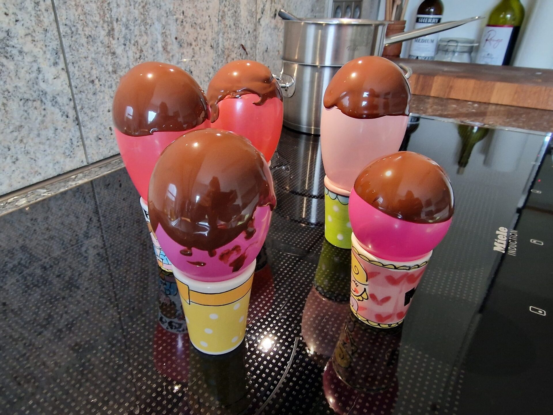 PS.: Die hier zum Spaß und Zuschauen für Kinder verwendeten Luftballons zum Herstellen der Schokoschalen können selbstverständlich normalerweise mit Silikonformen ersetzt werden :).