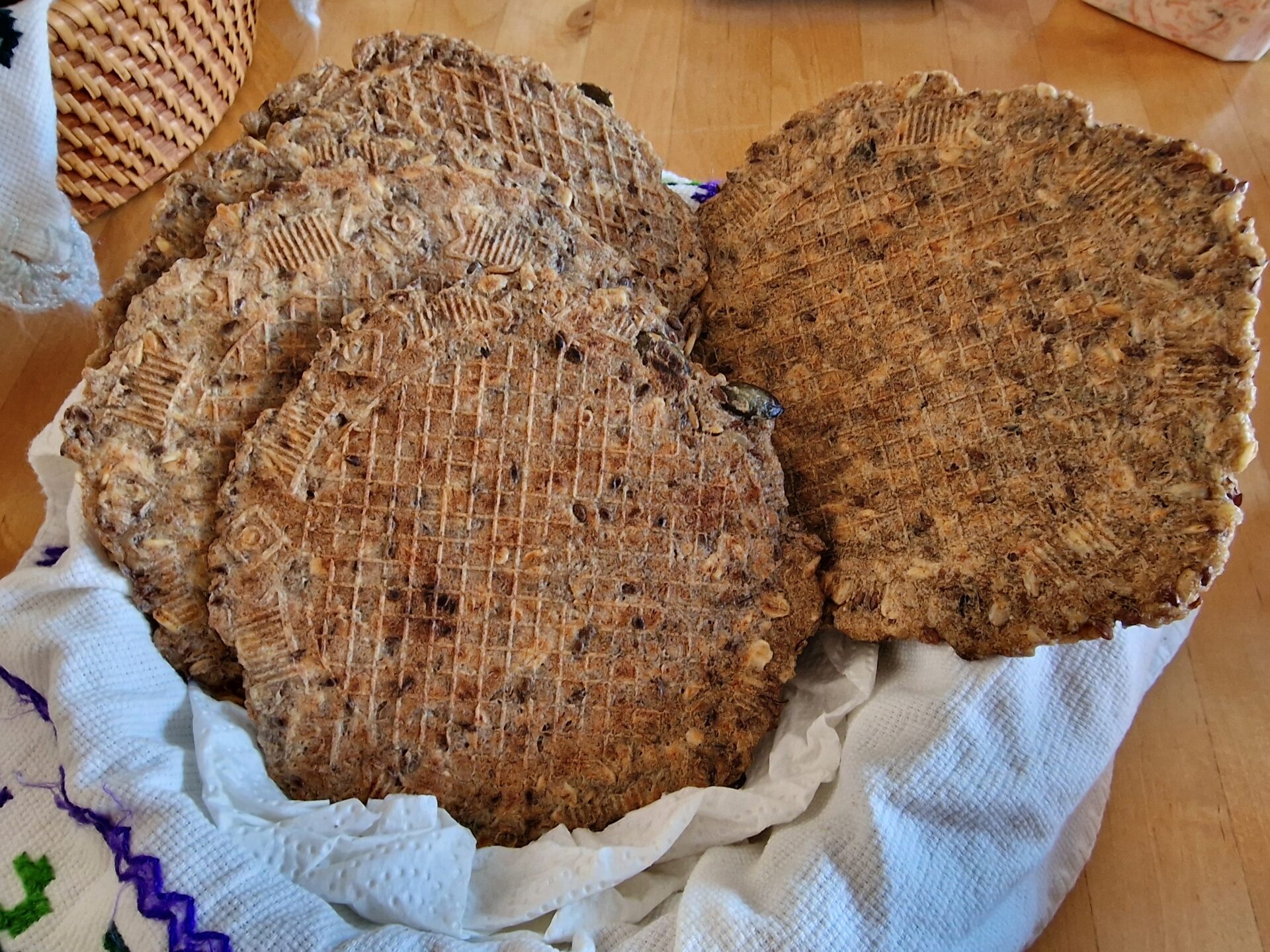Tipp: Wenn man den gleichen Teig etwas flüssiger gestaltet, etwa 2 Esslöffel Öl zugibt und in ein Neujahrseisen gibt, ergibt das knusprige Vollkornwaffeln. Auch vorgekochte Roggenkörner können zusätzlich zugegeben werden.