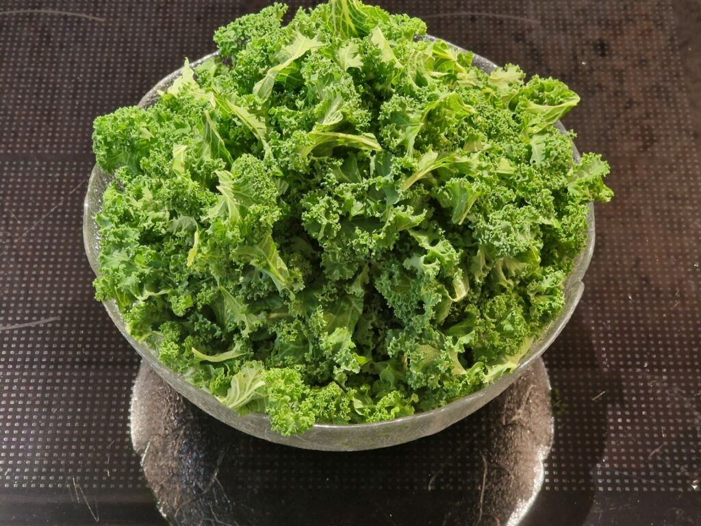 - 150 g frischer Grünkohl, Rippen entfernt, gewaschen und mundgerecht zerkleinert