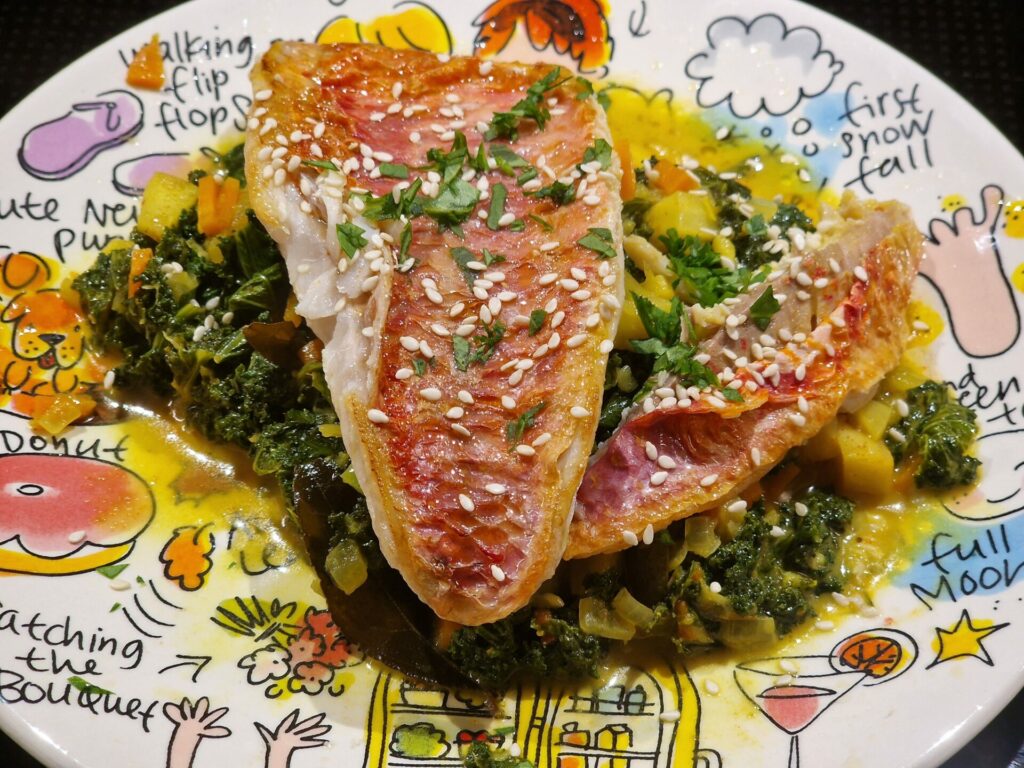 - 2 Meerbarbenfilets (ja 150 g mit Haut)