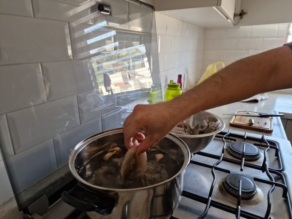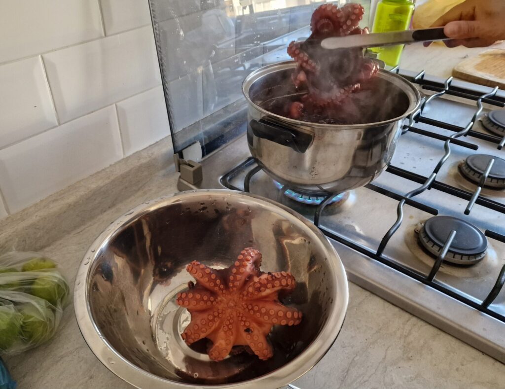 Tipp: Das Oktopus Kochwasser nicht wegschütten. Es kann perfekt zum Kochen von Pasta oder Risotto genutzt werden und gibt beiden einen passenden Grundgeschmack zum Oktopus. Etwas Jalapeño im Kochwasser gibt ein wenig mehr ‚Biss‘.