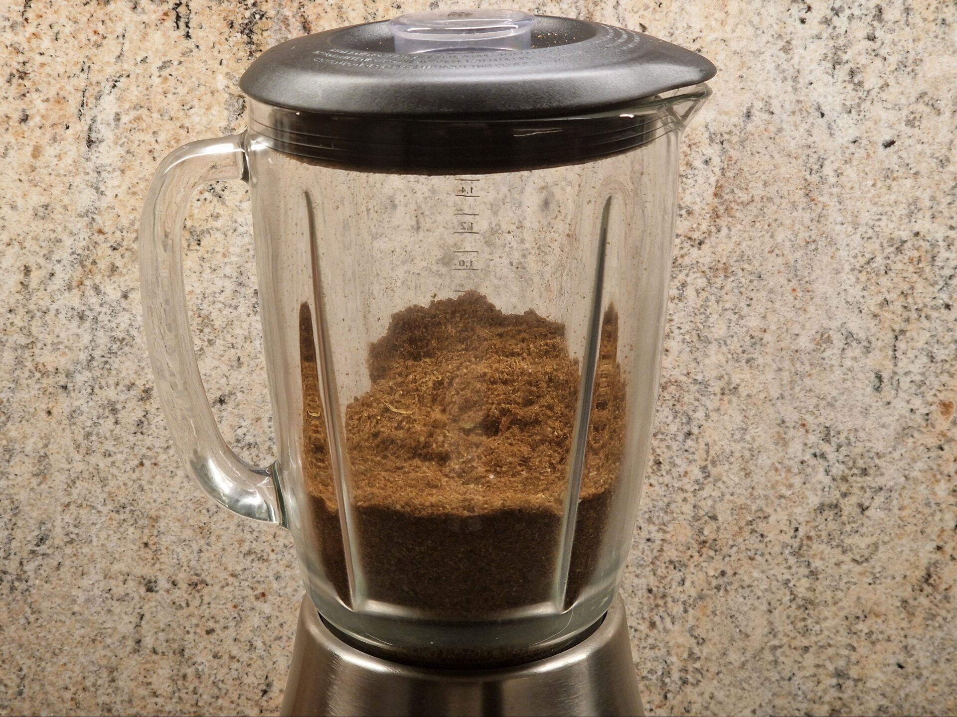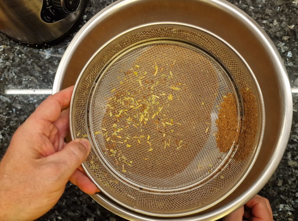 In der Gewürzmühle oder dem Blender und im Anschluss der Gewürzmühle mahlen und für den späteren Gebrauch abfüllen. Tipp: Nicht zu fein mahlen.