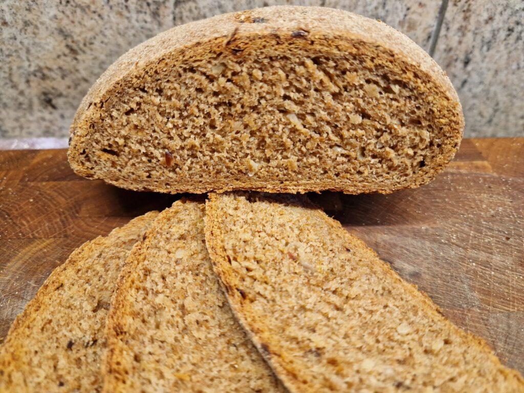 - Etwa 1000 g Mehl (1:1 Dinkel und Weizen), frisch gemahlen