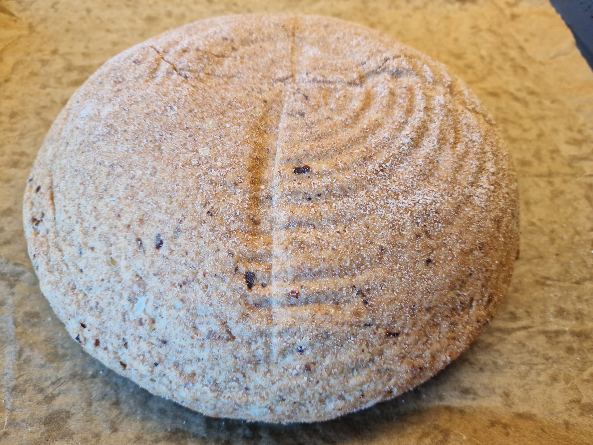 - Etwa 1000 g Mehl (1:1 Dinkel und Weizen), frisch gemahlen