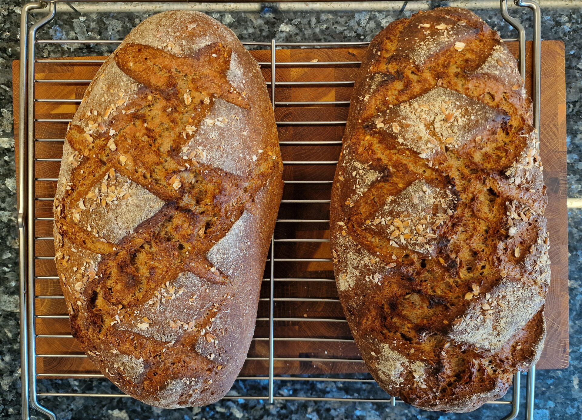Hafer enthält im Vergleich zu anderen Getreidearten mehr Mineralstoffe, Ballaststoffe (Beta-Glucane) und Fett. Das Getreide wurde schon von 3000 Jahren besonders im nördlichen Europa als eines der Grundnahrungs mittel angebaut. Hafer hat verglichen mit anderen Getreidesorten einen geringeren Kleberanteil, was die Backfähigkeit einschränkt. Für Brot wird er daher nur anteilig verwendet um ein Aufgehen des Teigs sicher zu stellen. Das Rezept unten ist für zwei Brote gedacht, der Hafer verleiht ihnen einen angenehm milden und leicht nussigen Geschmack.