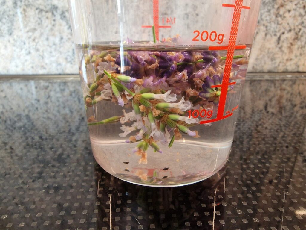 - 2 Esslöffel frische Lavendelblüten (Lavandula angustifolia) oder 1 Esslöffel getrocknete Blüten