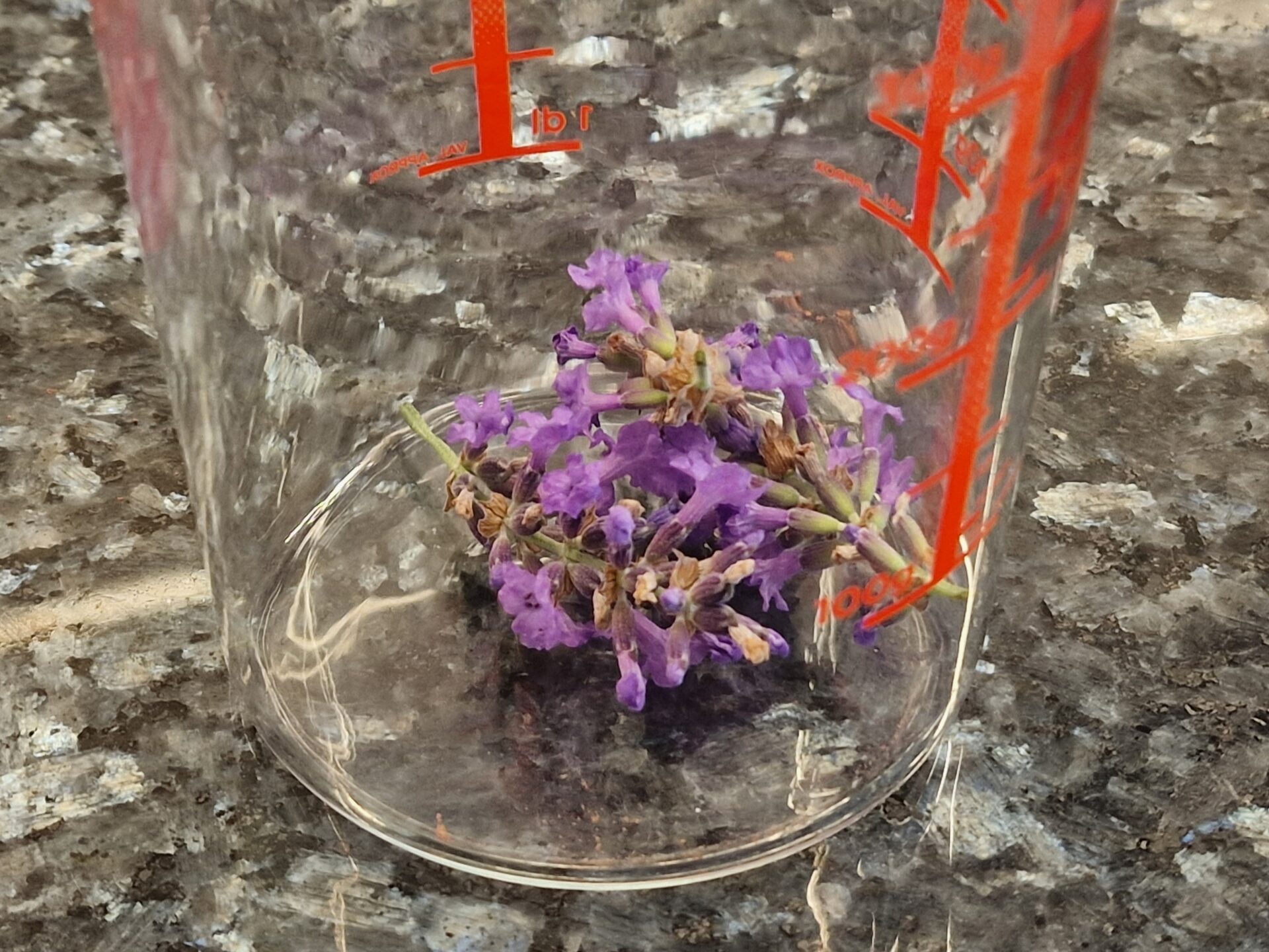 - 2 Esslöffel frische Lavendelblüten (Lavandula angustifolia) oder 1 Esslöffel getrocknete Blüten