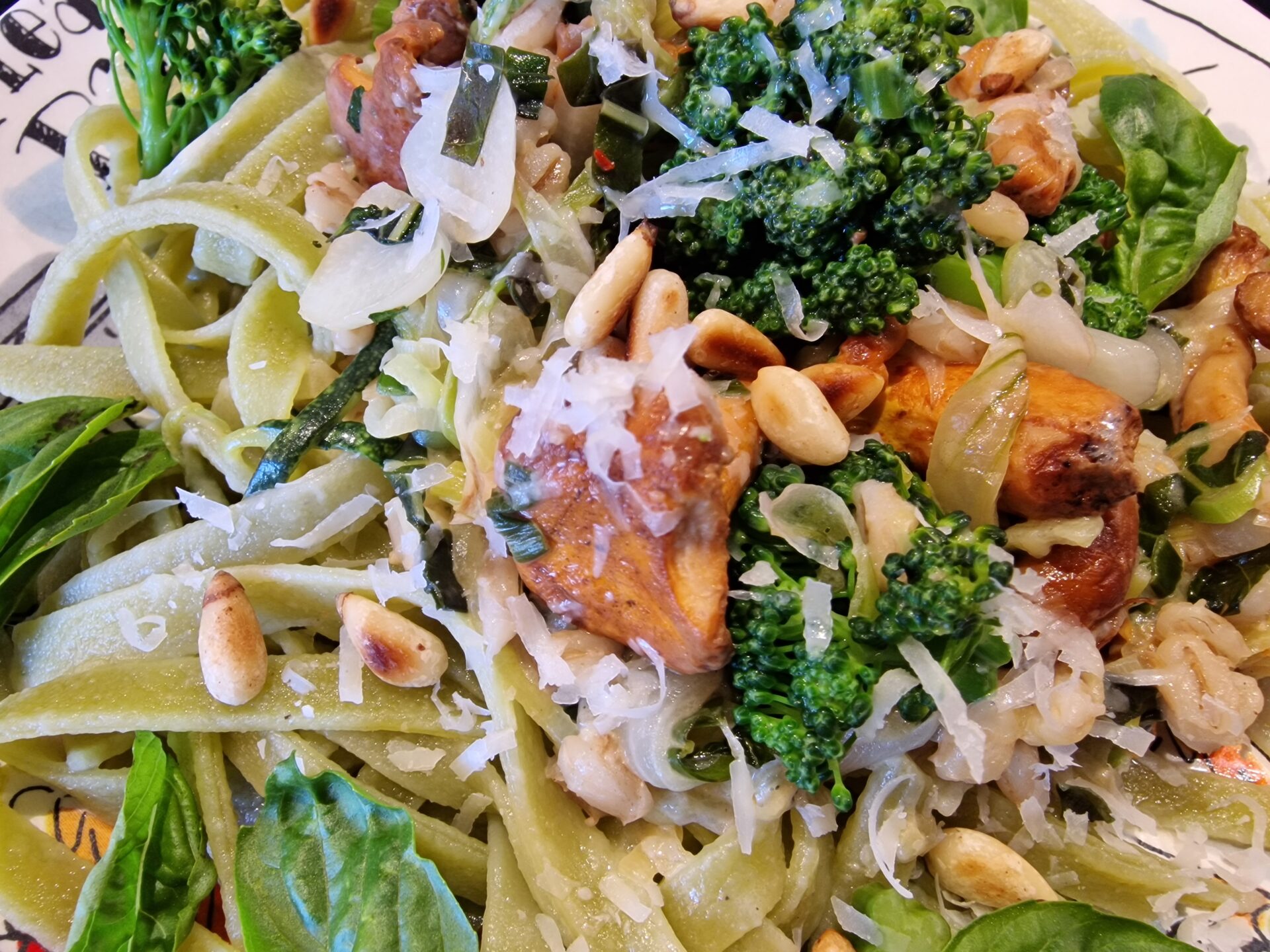 Tipp: Wir haben hier grüne Bandnudeln genutzt.
