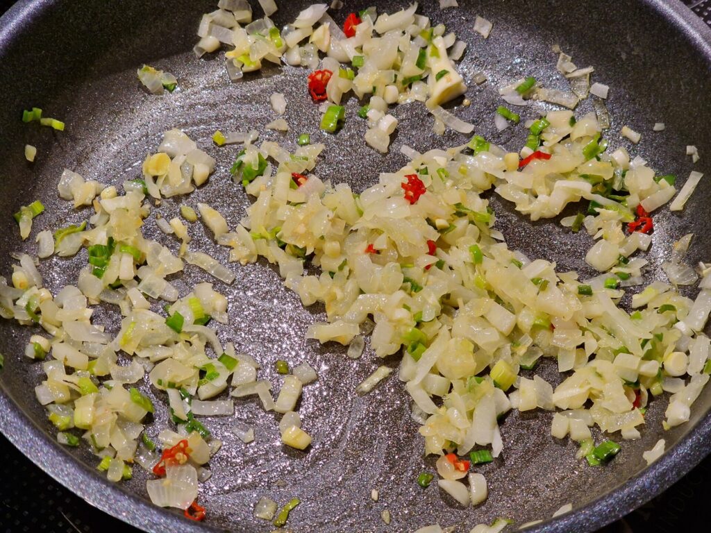 Olivenöl in der Pfanne erhitzen. Frühlingszwiebeln, Chili und Knoblauch anbraten, dann Brokkoli-Reis, Korianderstiele, Salz und etwas Pfeffer hinzufügen. 1 Minute unter Rühren kochen bis alles leicht erwärmt, aber noch hellgrün ist. Zum Schluss Kreuzkümmel, Limettenschale und einen Spritzer Limettensaft unterrühren. Guten Appetit.