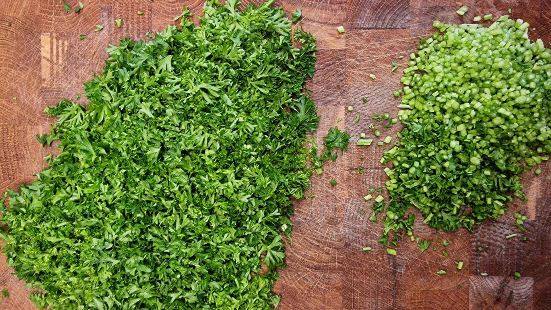 - 250 g getrocknete und halbierte Favabohnen (in anderen Falafelzubereitungen würden hier Kicherbsen genutzt werden)