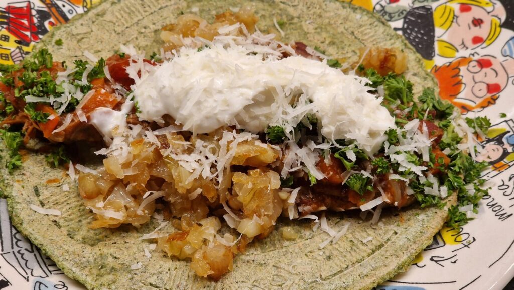 Das Rezept liefert Weizenmehl Tortillas in zur Abwechslung in grüner Farbe. Inspiriert ist das Ganze natürlich von den Tortillarezepten aus Mexico.