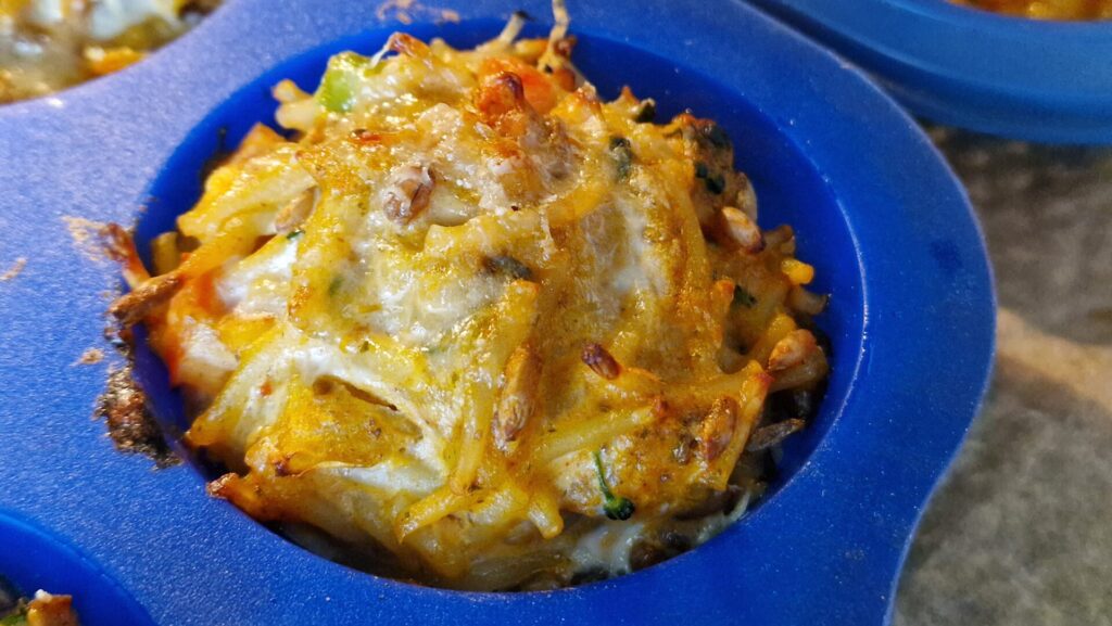 Das Rezept ergibt etwa 12 Frittata – Muffins (bei der Version mit Spaghetti 24) ,die in etwa 1 Stunde zubereitet sind und sich gut als Beilage zum Frühstück oder auch als Fingerfood eignen.