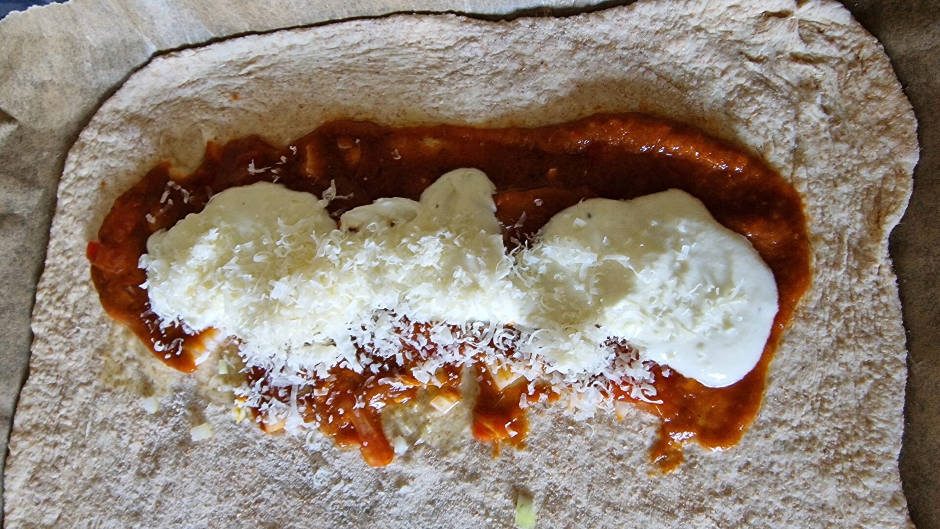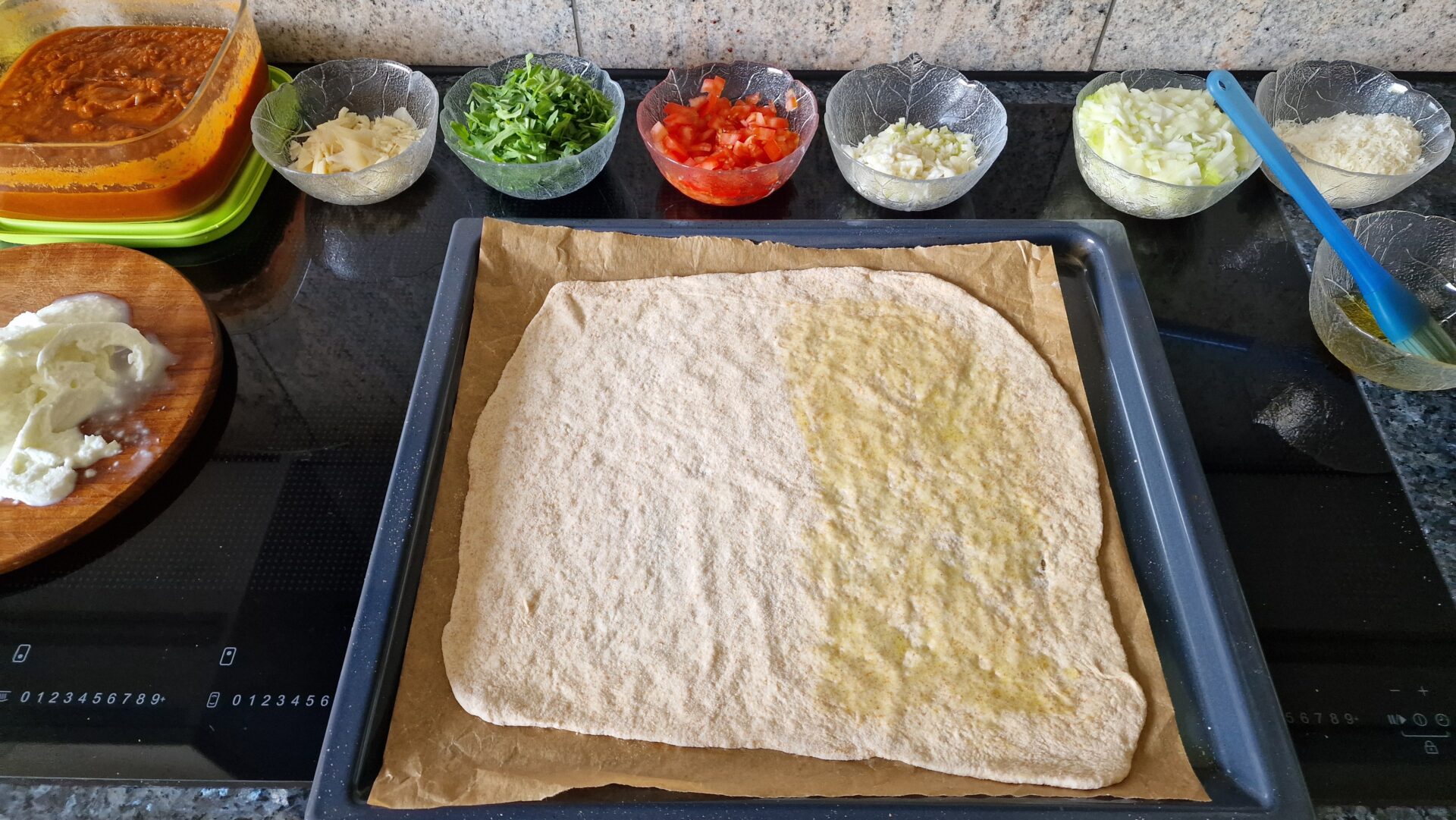 - optional für eine Calzone halb und halb Pizza: Tomatensauce (zuvor vorbereitet)