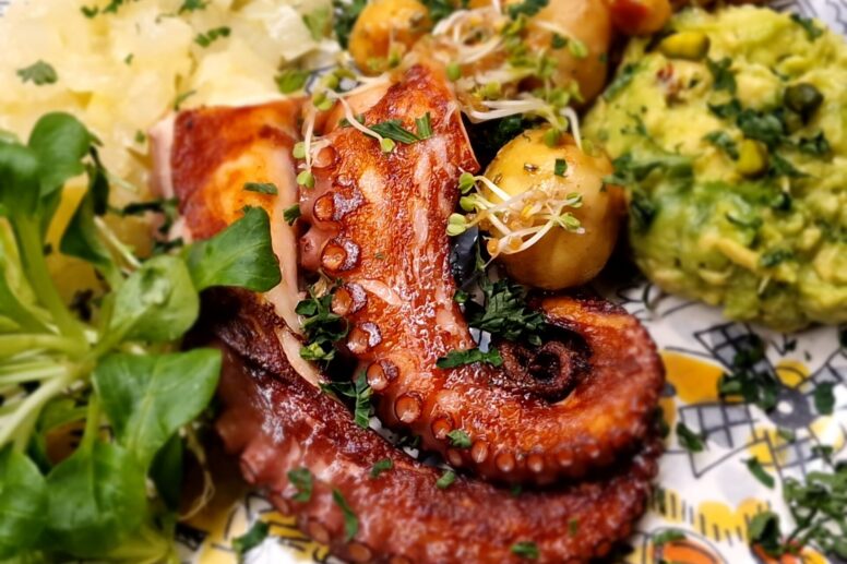 Oktopus braucht eine besondere Aufmerksamkeit beim Kochen um nicht gummiartig zu enden. Dann aber lohnt es sich, das Fleisch ist zart und butterweich! Zutaten Wasser mit Knoblauch, Lorbeer, Salz und …
