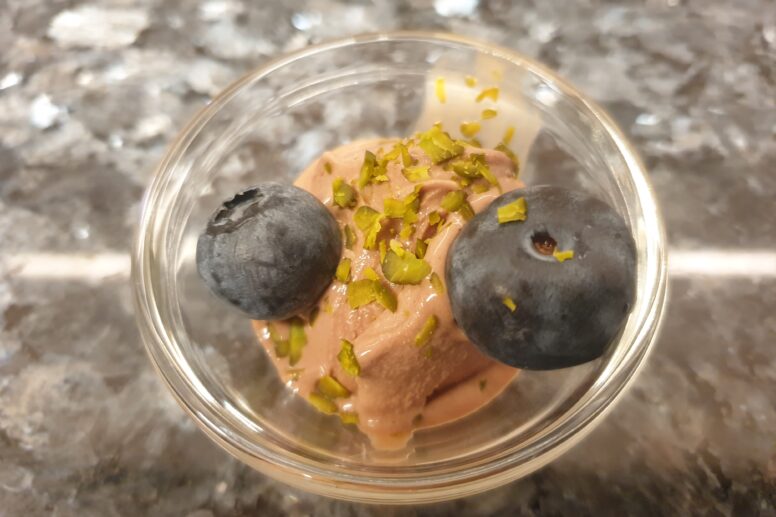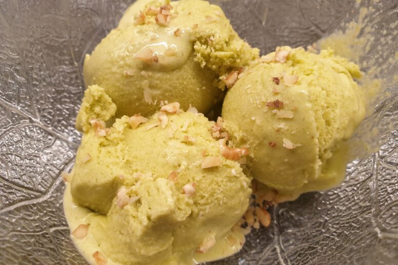 Noch eine leckere Eisvariante … nicht vergessen den Behälter der Eismaschine 24 Stunden im Eisfach vorzukühlen. Ungesalzene, geschälte Pistazien sind recht teuer, weshalb im kommerziell hergestellten Eis oft Aromen verwendet …