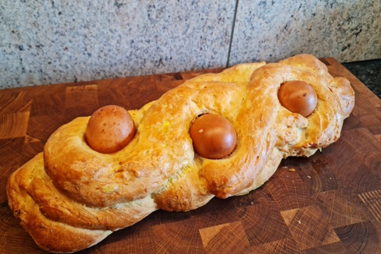 In Griechenland ist ein ähnliches, aber aufwendigeres Gebäck unter dem Namen Tsoureki bekannt und wird dort traditionell mit rot gefärbten Eiern verziert, die Fruchtbarkeit, aber auch die Auferstehung und Frühling …